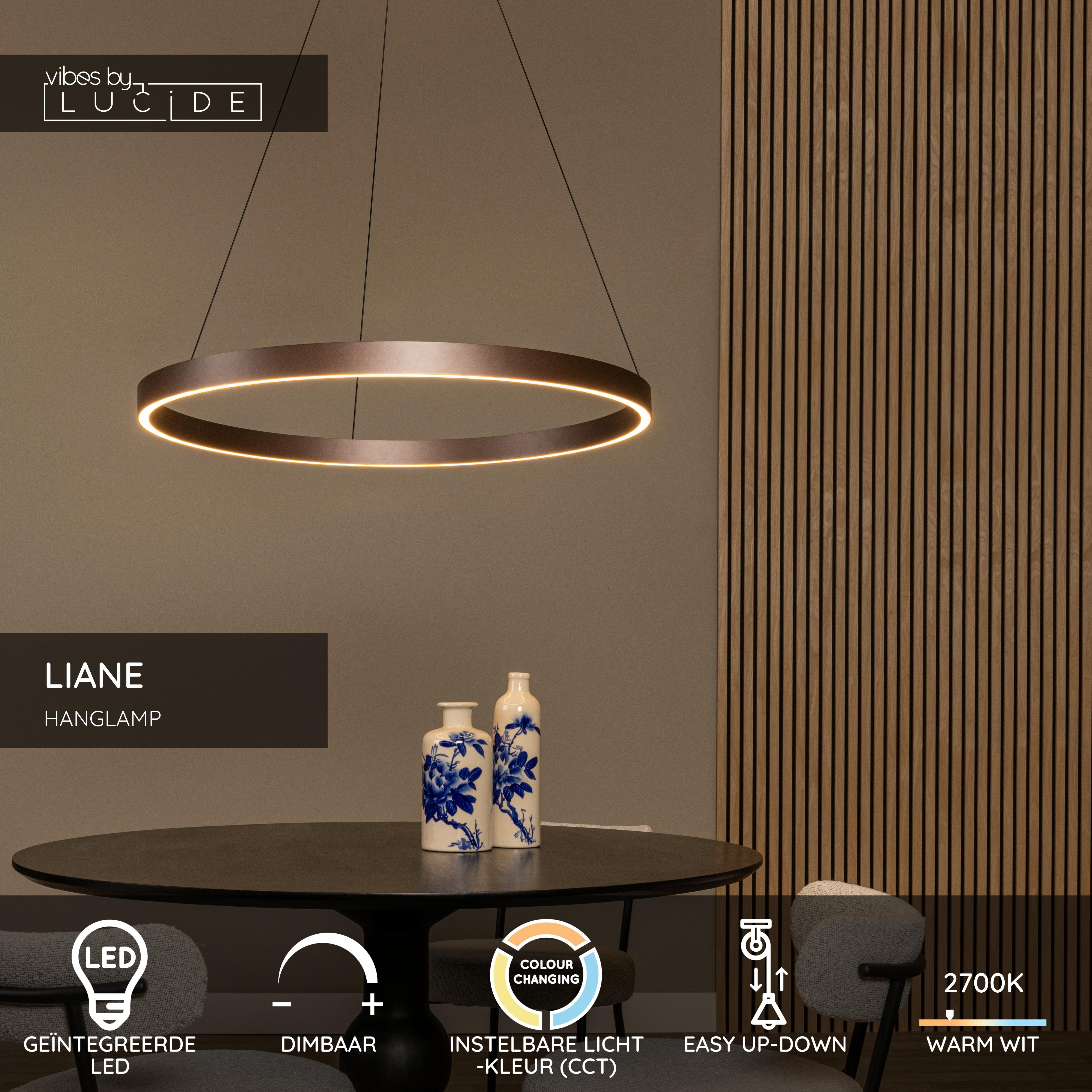 Lucide LIANE - Hanglamp - Ø 80 cm - LED Dimb. - CCT - 2x36W 2700K/4000K - Roest bruin | Vibes