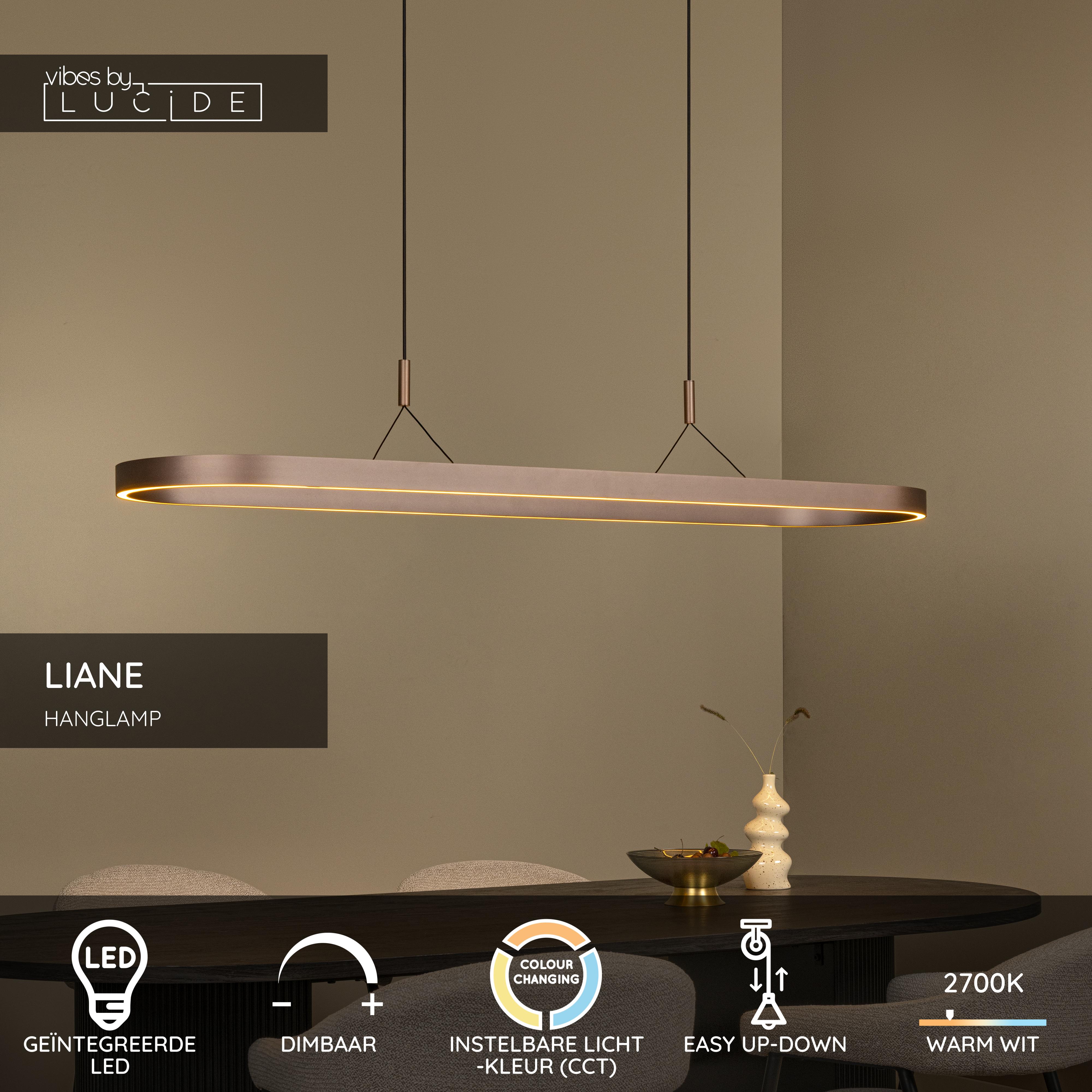 Geraffineerde eenvoud en krachtige functionaliteit komen samen in hanglamp LIANE. Deze stijlvolle hanglamp uit de pendelarmaturen is uitgevoerd in roestbruin aluminium en uitgerust met een geïntegreerde LED-lichtbron. Dankzij het katrolsysteem is de lamp eenvoudig in hoogte verstelbaar, ideaal voor zowel eetkamers als woonkamers. De kleurtemperatuur is aanpasbaar tussen 2700K en 4000K, voor warm of functioneel licht op elk moment. Met een breedte van 150 cm en een maximale hoogte van 200 cm biedt LIANE zowel sfeer als statement. Koppel hem eenvoudig aan een wandschakelaar en breng je interieur naar een hoger niveau.