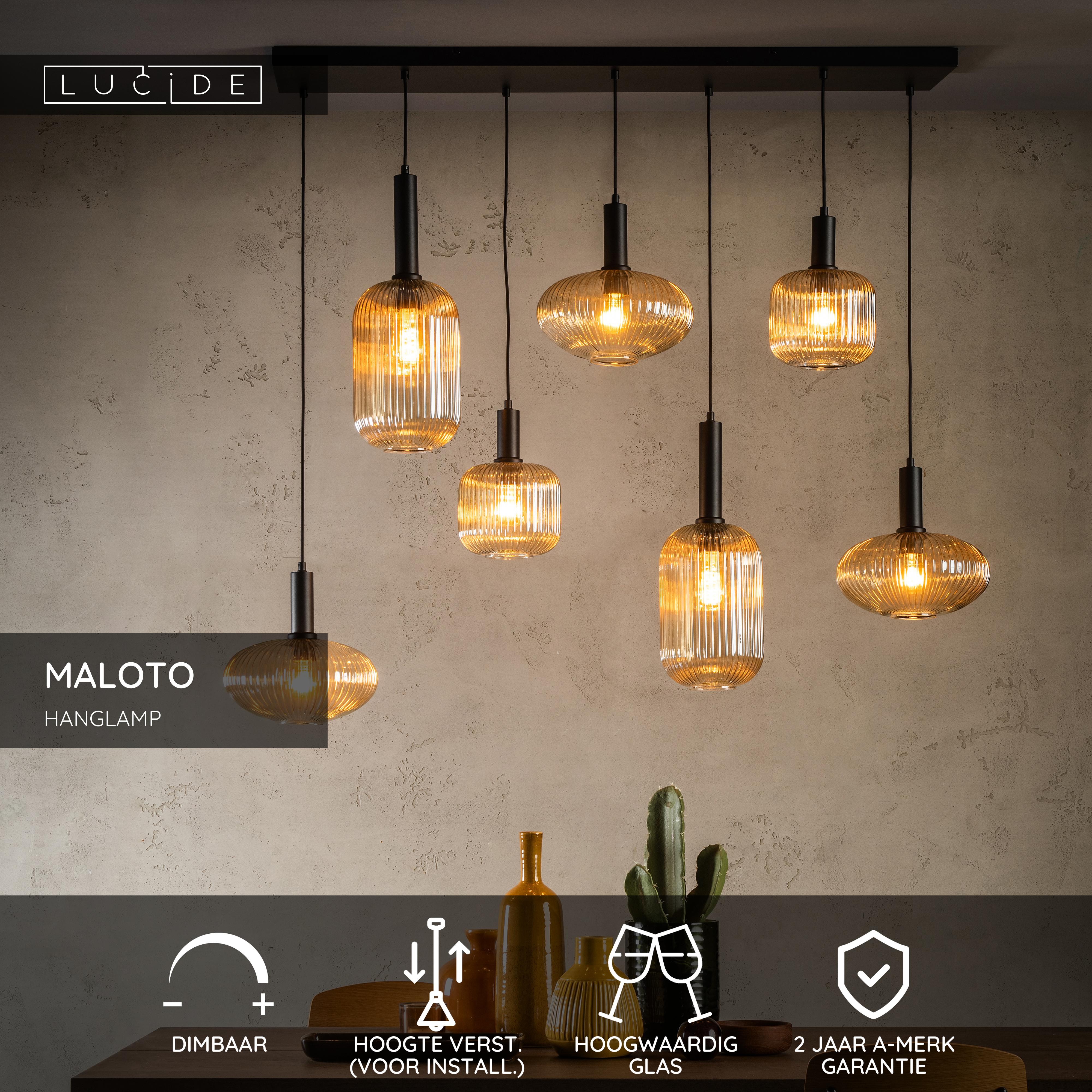 Lucide MALOTO - Hanglamp - 7xE27 - Amber