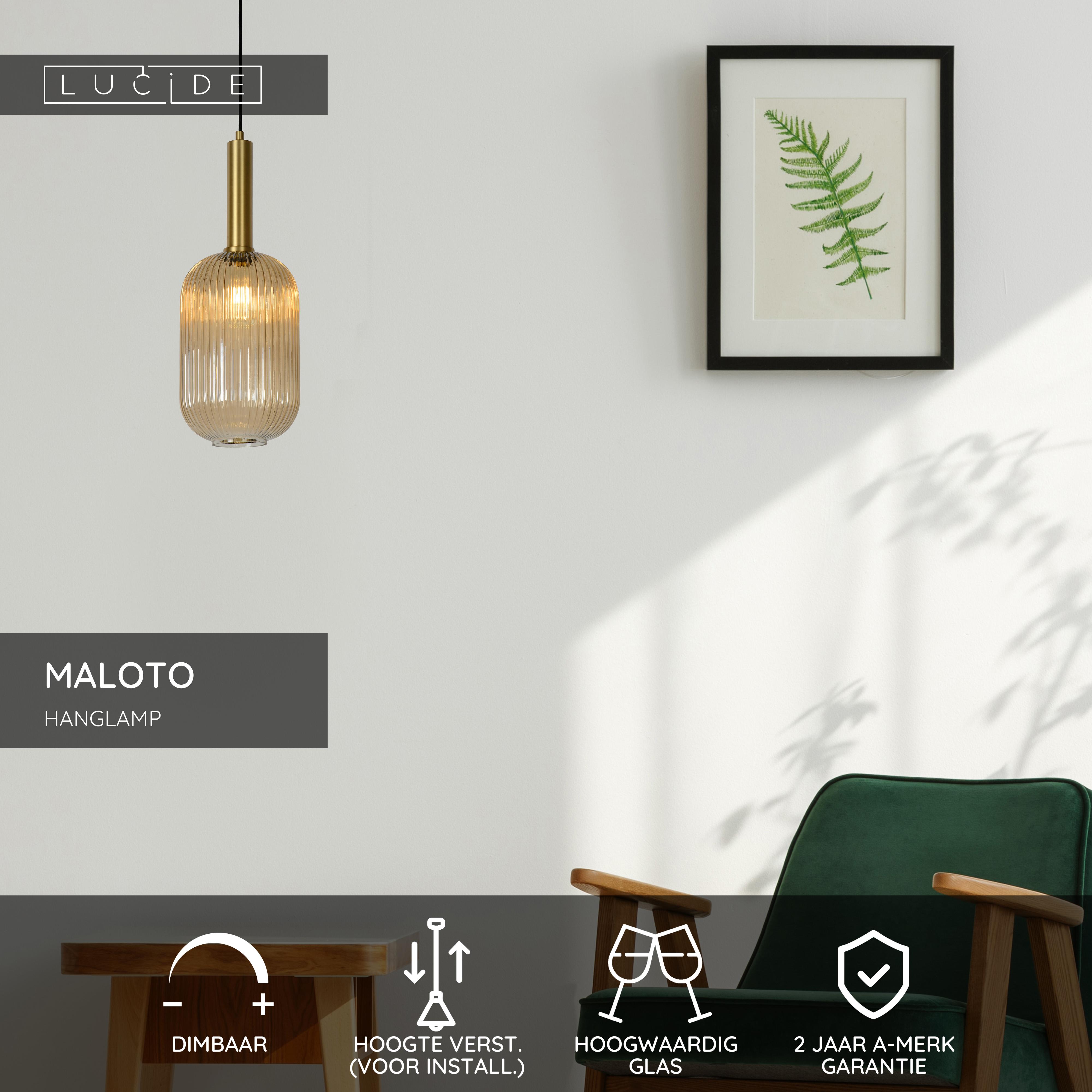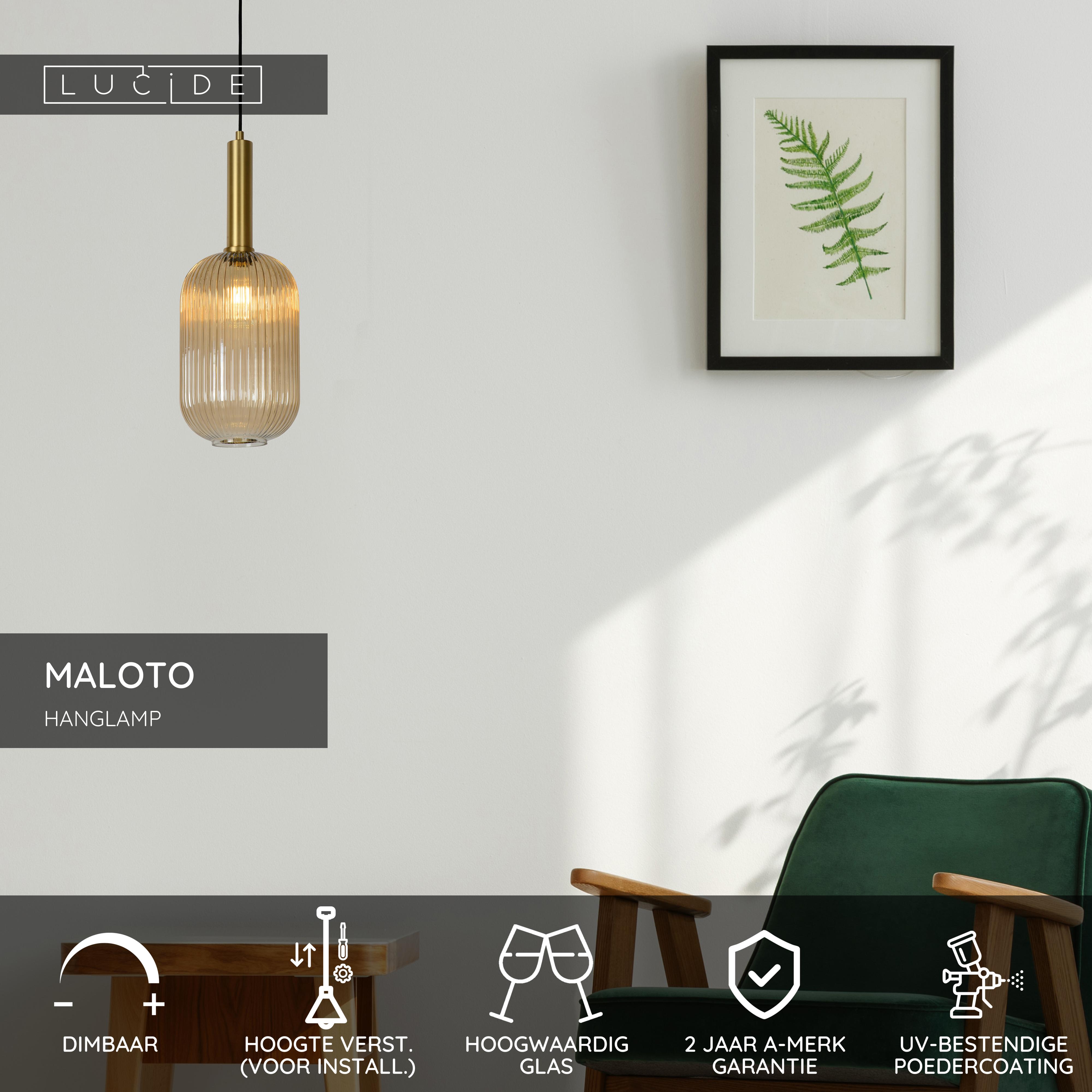 Lucide MALOTO - Hanglamp - Ø 20 cm - 1xE27 - Amber