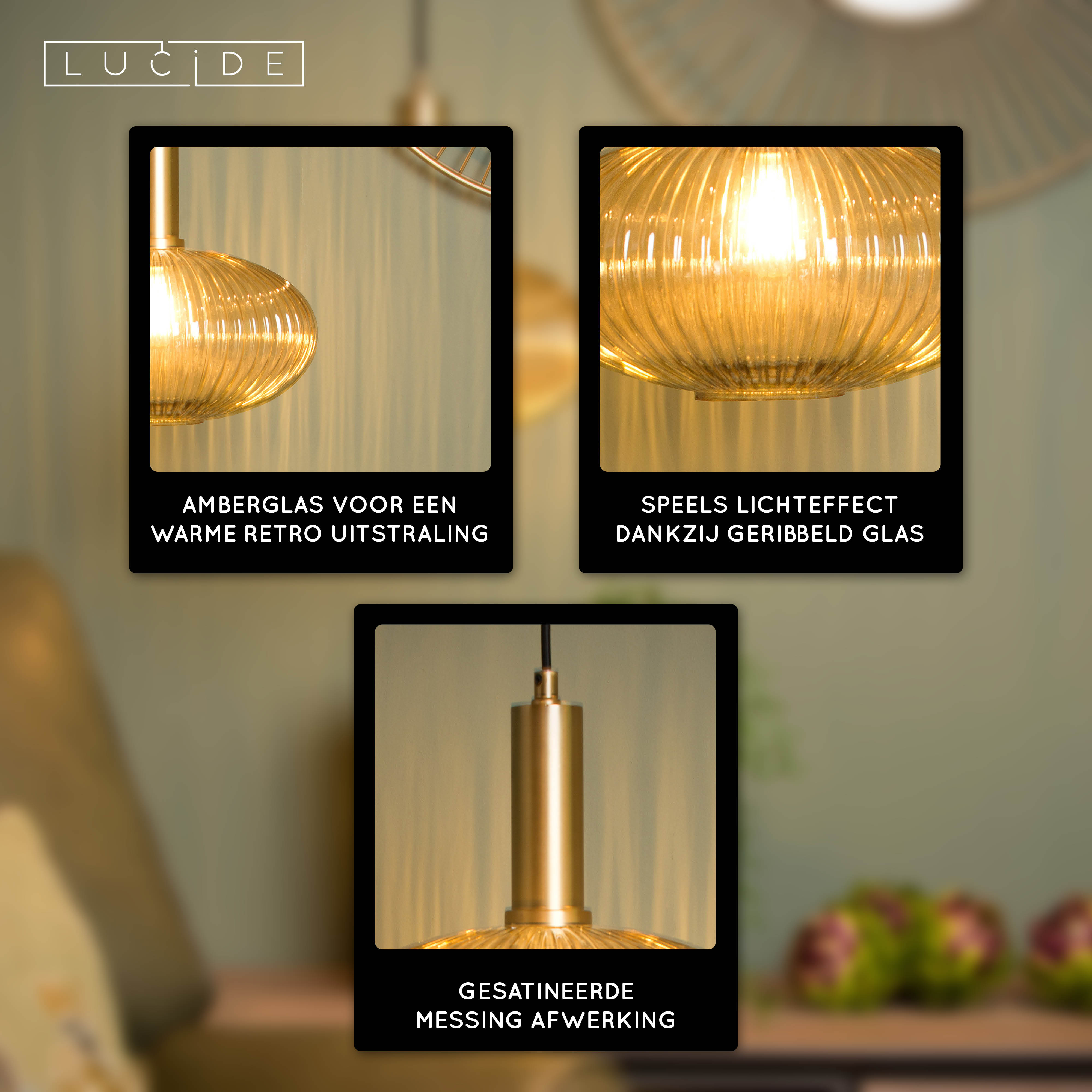 Lucide MALOTO - Hanglamp - Ø 30 cm - 1xE27 - Amber