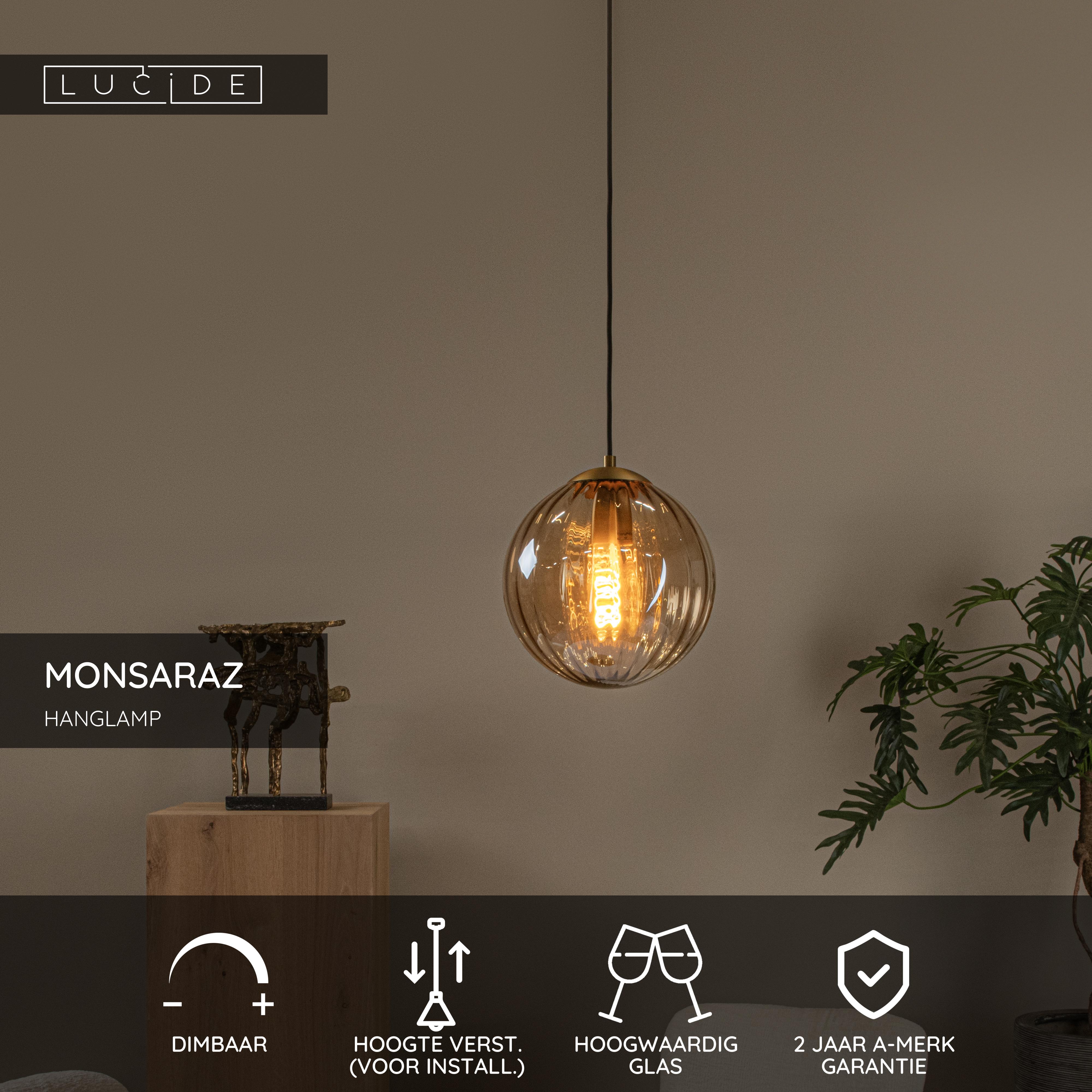 Lucide MONSARAZ - Hanglamp - Ø 25 cm - 1xE27 - Amber