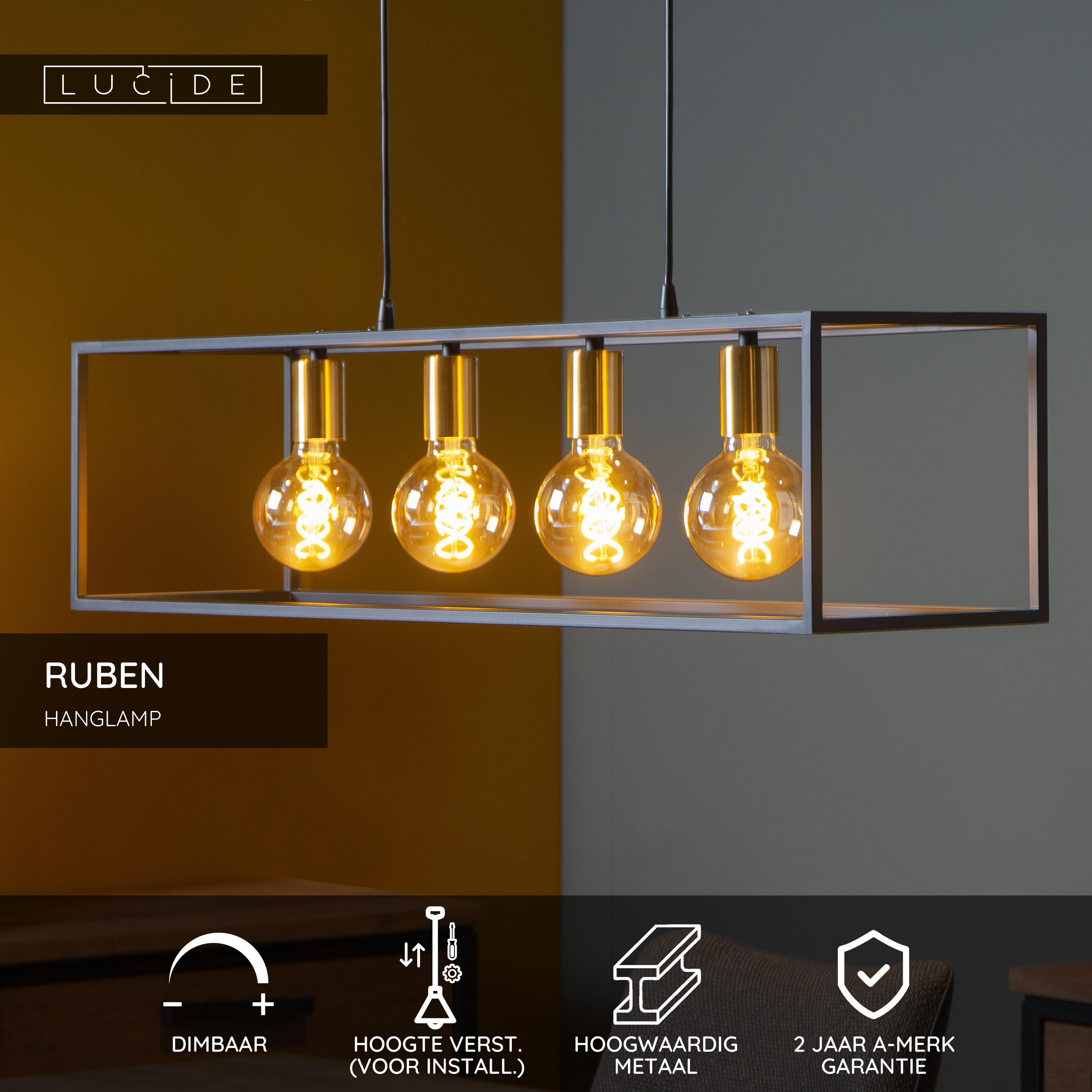 Lucide RUBEN - Hanglamp - 4xE27 - Zwart