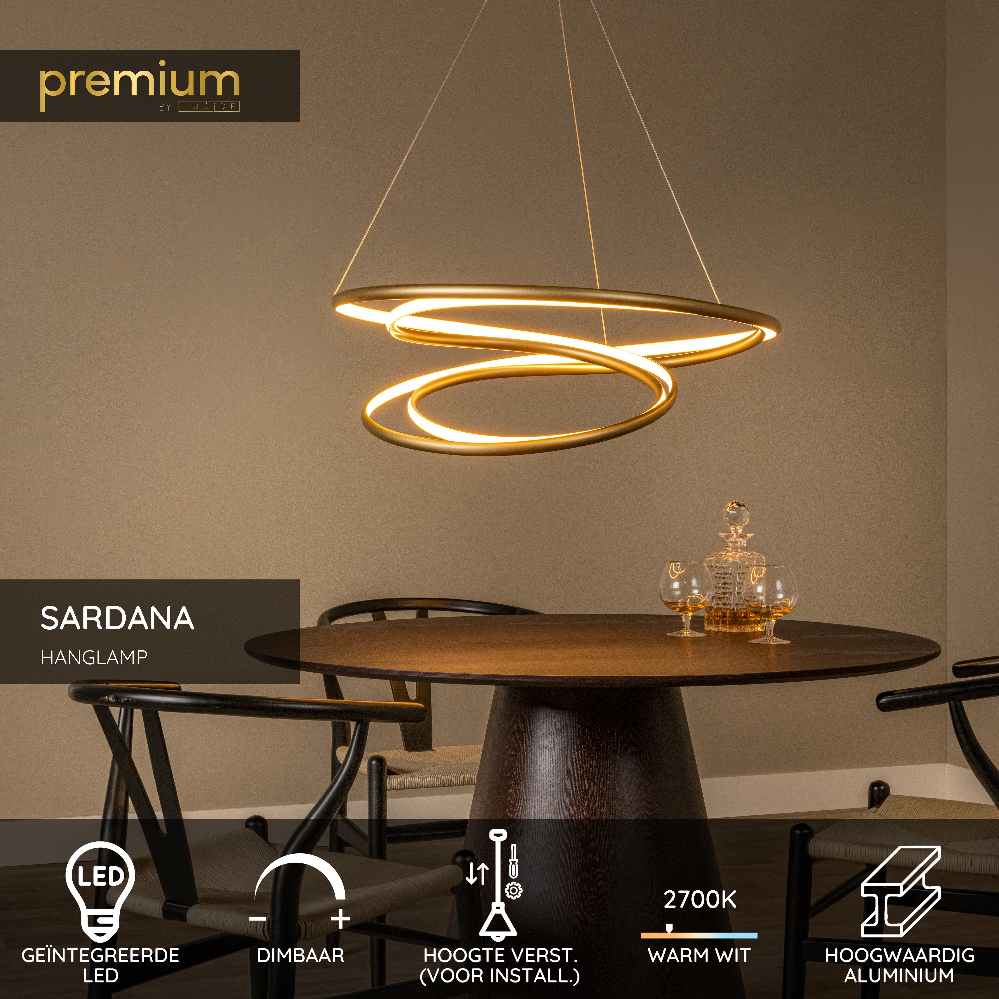 Lucide SARDANA - Hanglamp - Ø 80 cm - LED Dimb. - 1x74W 2700K - Mat Goud / Messing | Premium