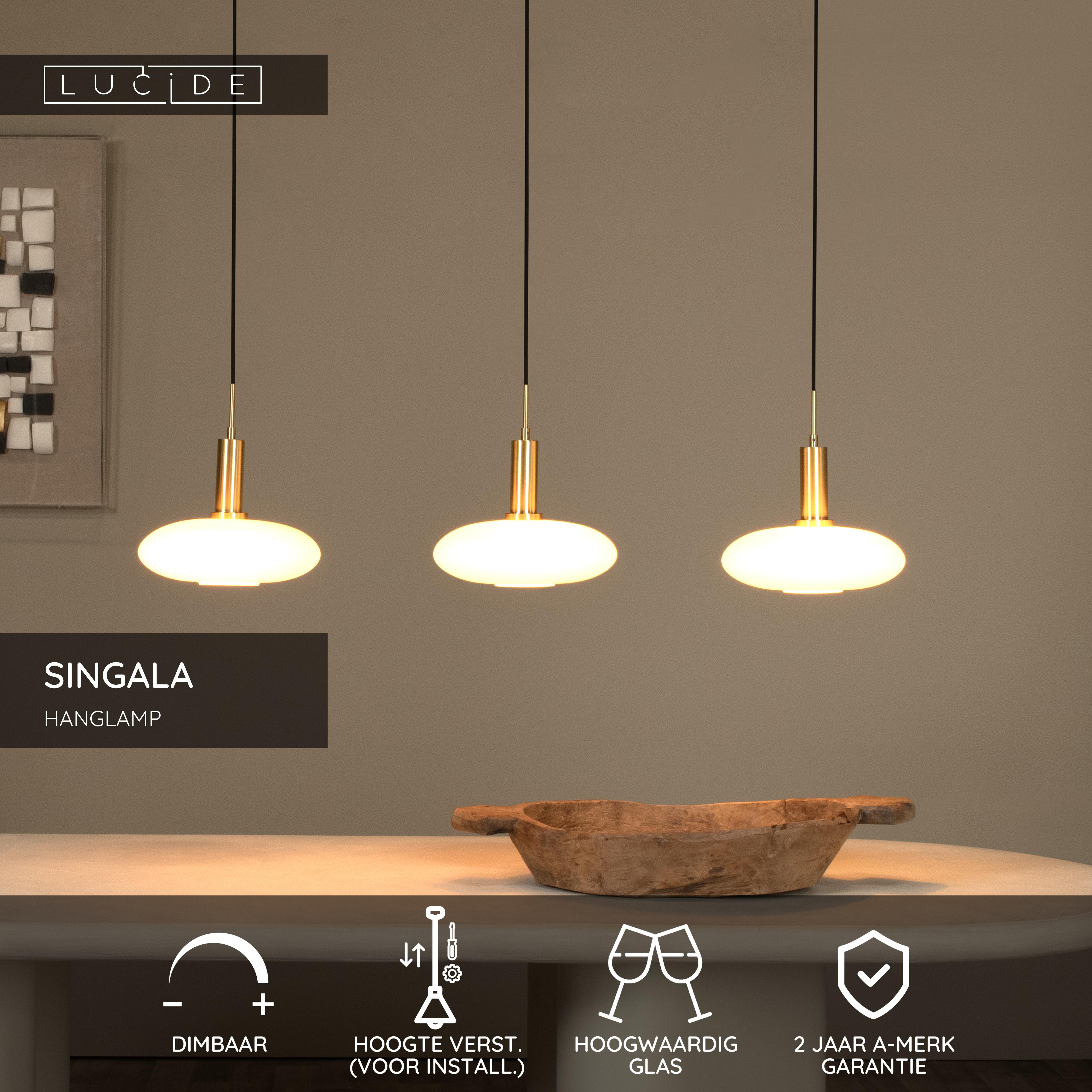 Met Singala kies je voor zachte gezelligheid. De combinatie van glas, metaal en messing creëert een elegante hanglamp met 3 pendels die het bijzonder goed doet in moderne en traditionele interieurs. Singala past zo in bijna elke ruimte van het huis. Afhankelijk van de kamer pas je de hoogte van de pendels individueel aan, van 70 tot 169 centimeter. De ovalen, glazen bol die tot 3 keer toe de lampenkap vormt garandeert sfeer op elk tijdstip van de dag. Zeker wanneer je Singala aansluit op een compatibele dimmer.