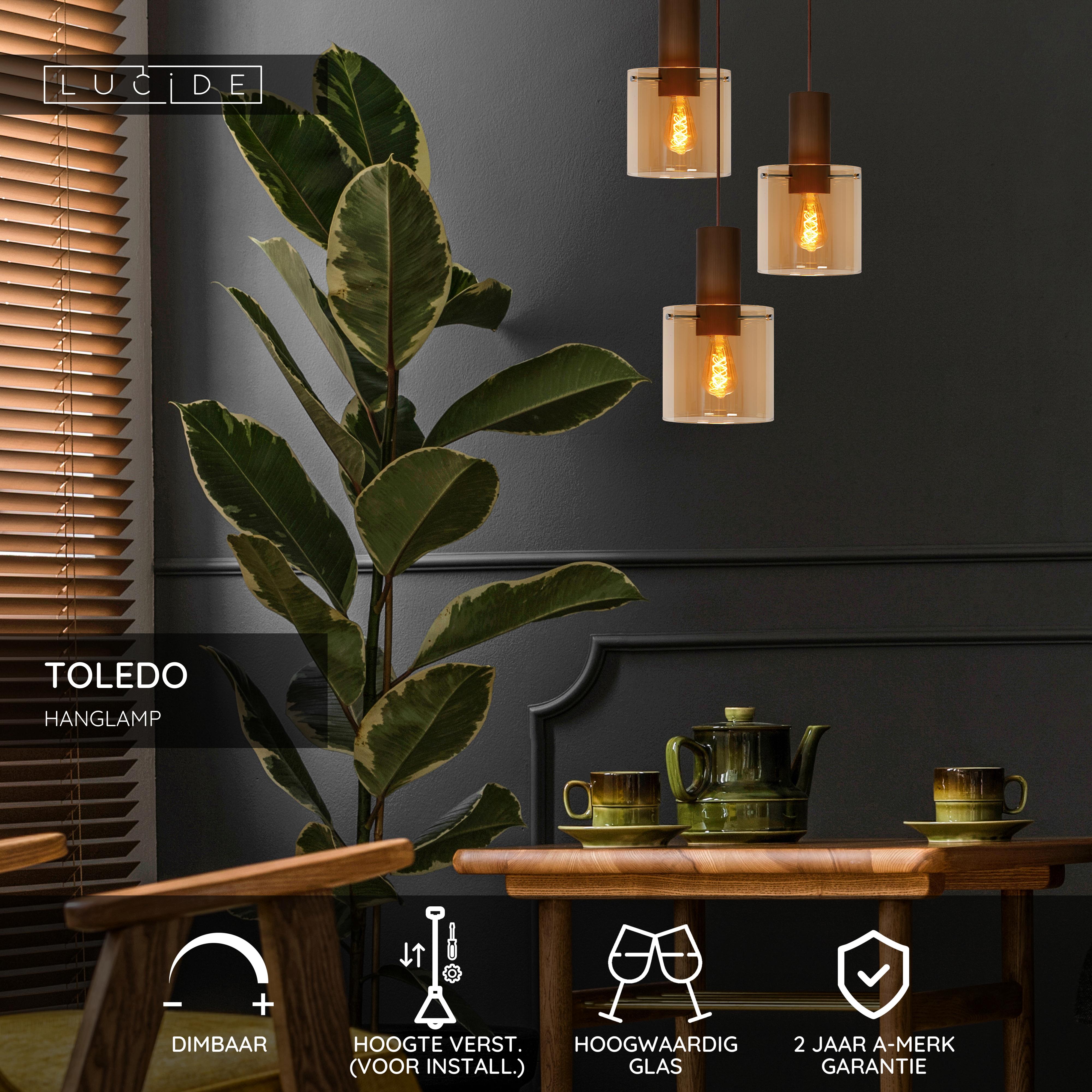 Lucide TOLEDO - Hanglamp - 3xE27 - Amber