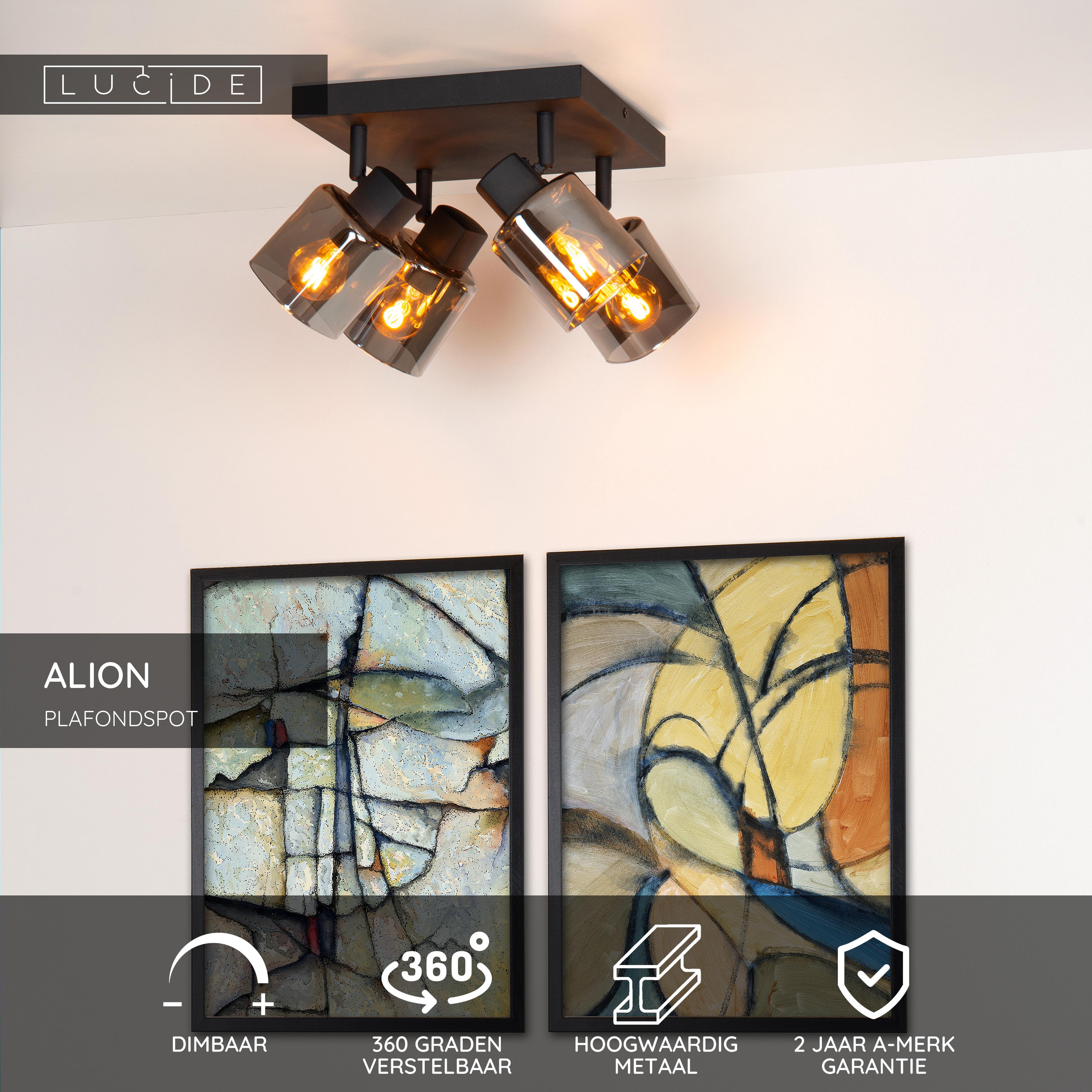 Zoek je plafondspots met net dat ietsje meer? Dan is Alion de ideale keuze. Deze plafondlamp met vier lichtpunten is 18 centimeter hoog, met een vierkante, metalen plafondplaat van 23 op 23 centimeter. De lampenkappen bestaan uit fuméglas in een afgerond vierkant dat zich rond de vier lichtbronnen bevindt. Zo krijgt de klassieke vormgeving van Alion meteen een moderne toets. De plafondlamp is draai- en kantelbaar en sluit je eenvoudig aan op een dimmer. Het perfecte licht waar en waneer je het nodig hebt? Alion is er klaar voor.