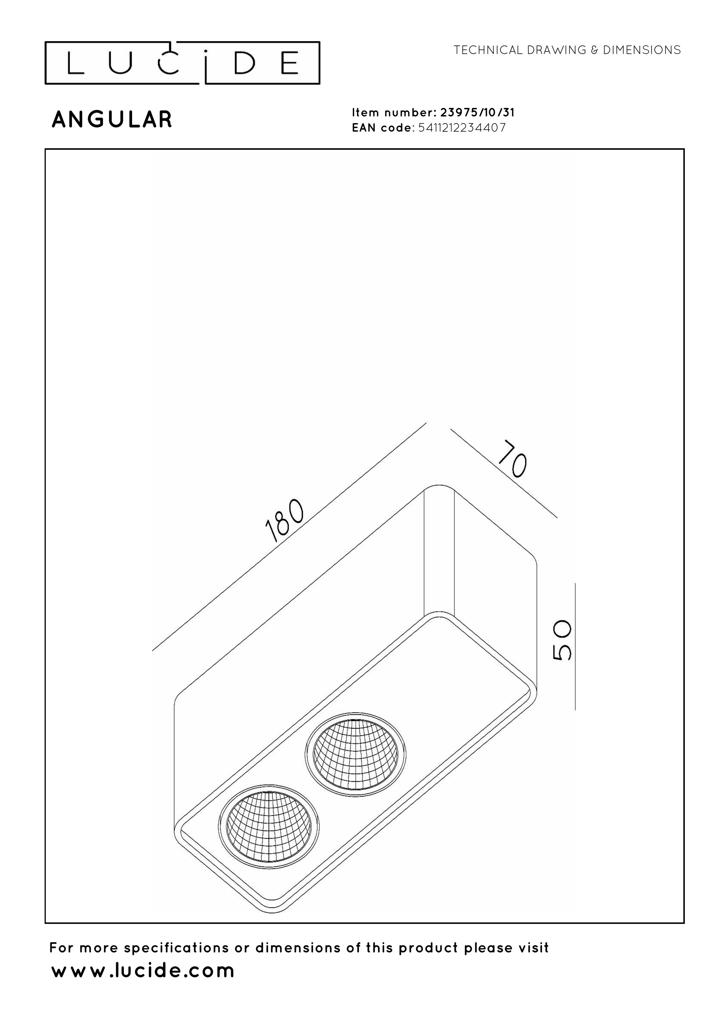 Lucide ANGULAR - Plafondspot - LED Dimb. - 2x5W 2700K - Wit | Premium