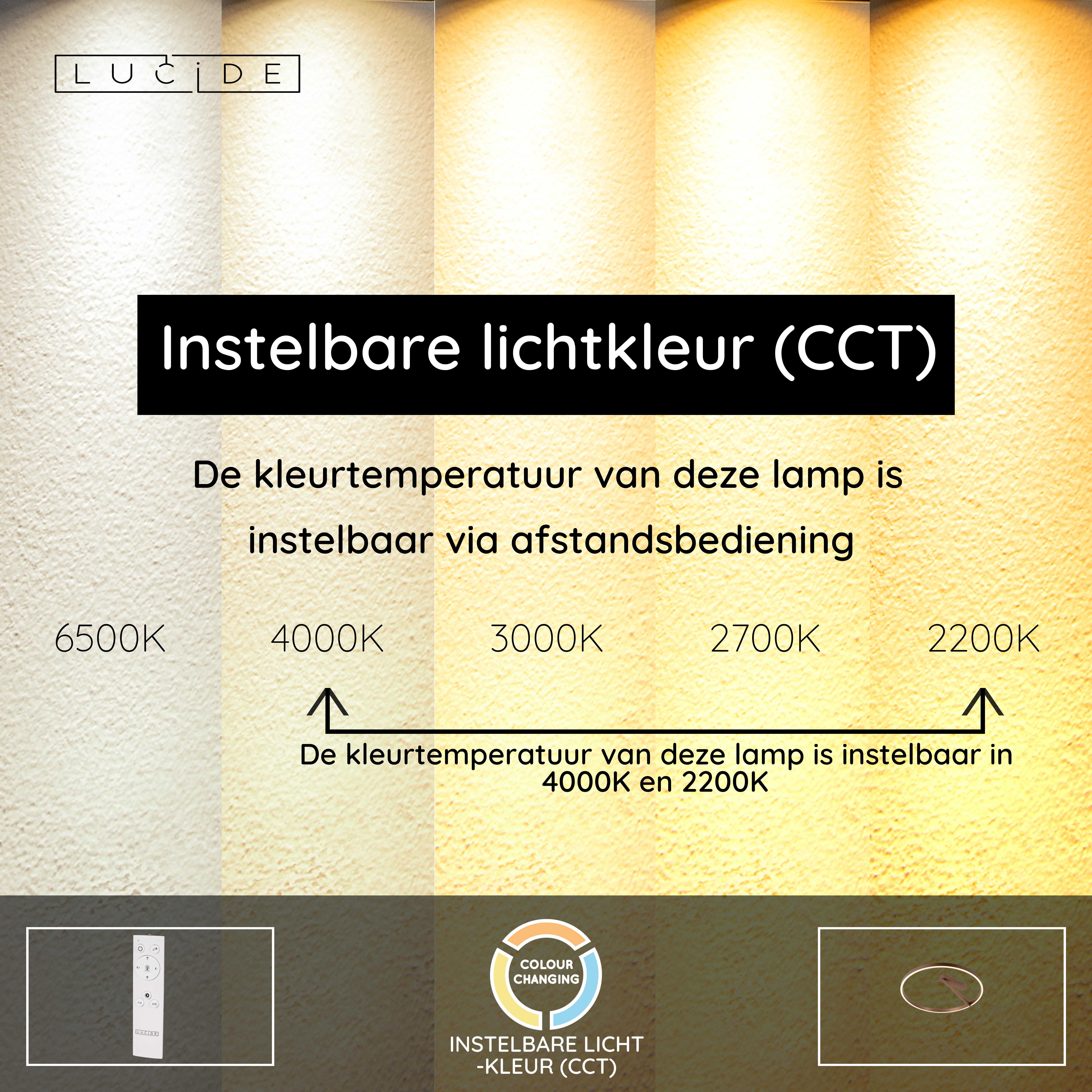 - Kleurtemperatuur instelbaar via afstandsbediening (2200K-4000K)