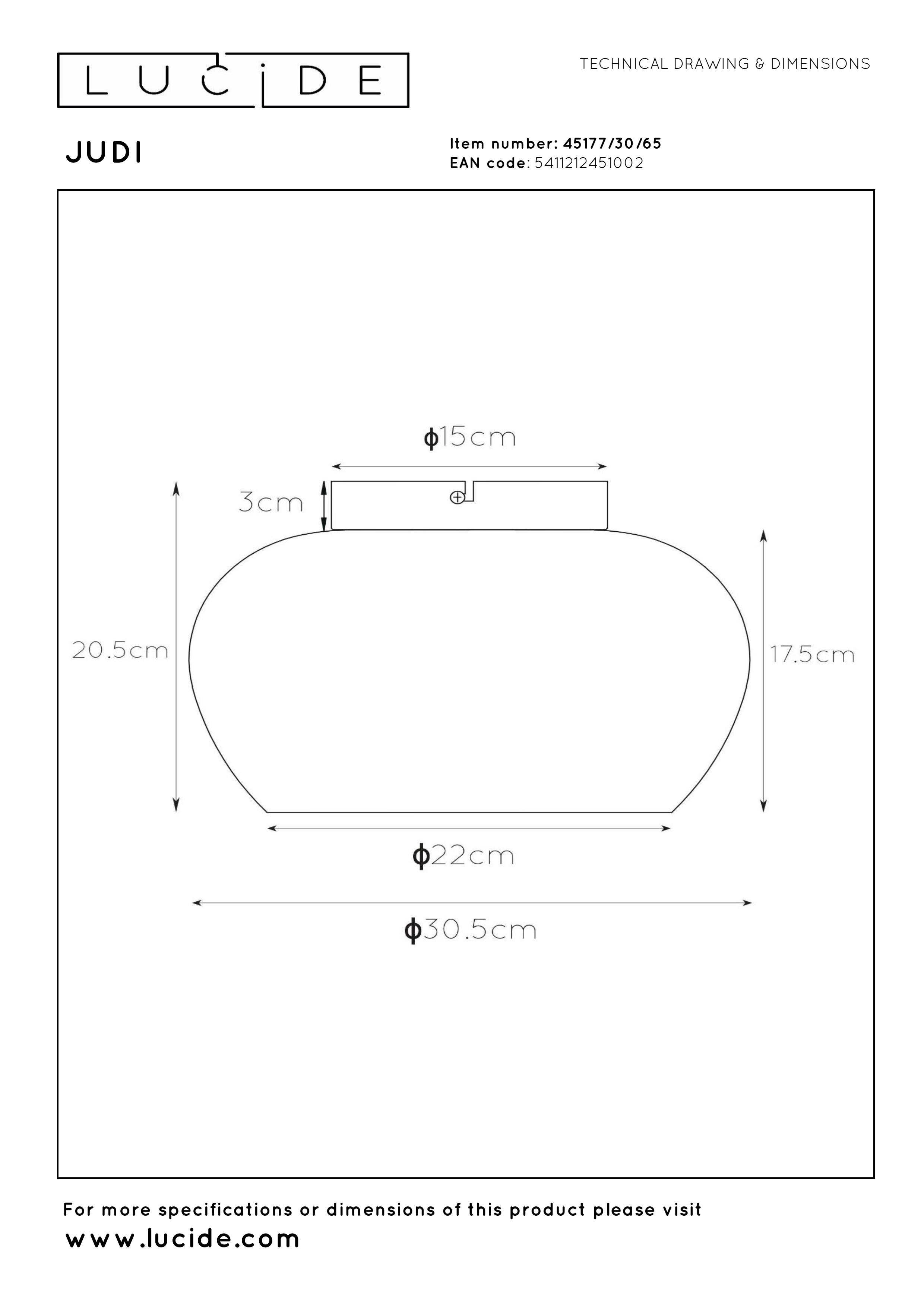 Lucide JUDI - Plafonnière - Ø 30,5 cm - 1xE27 - Fumé