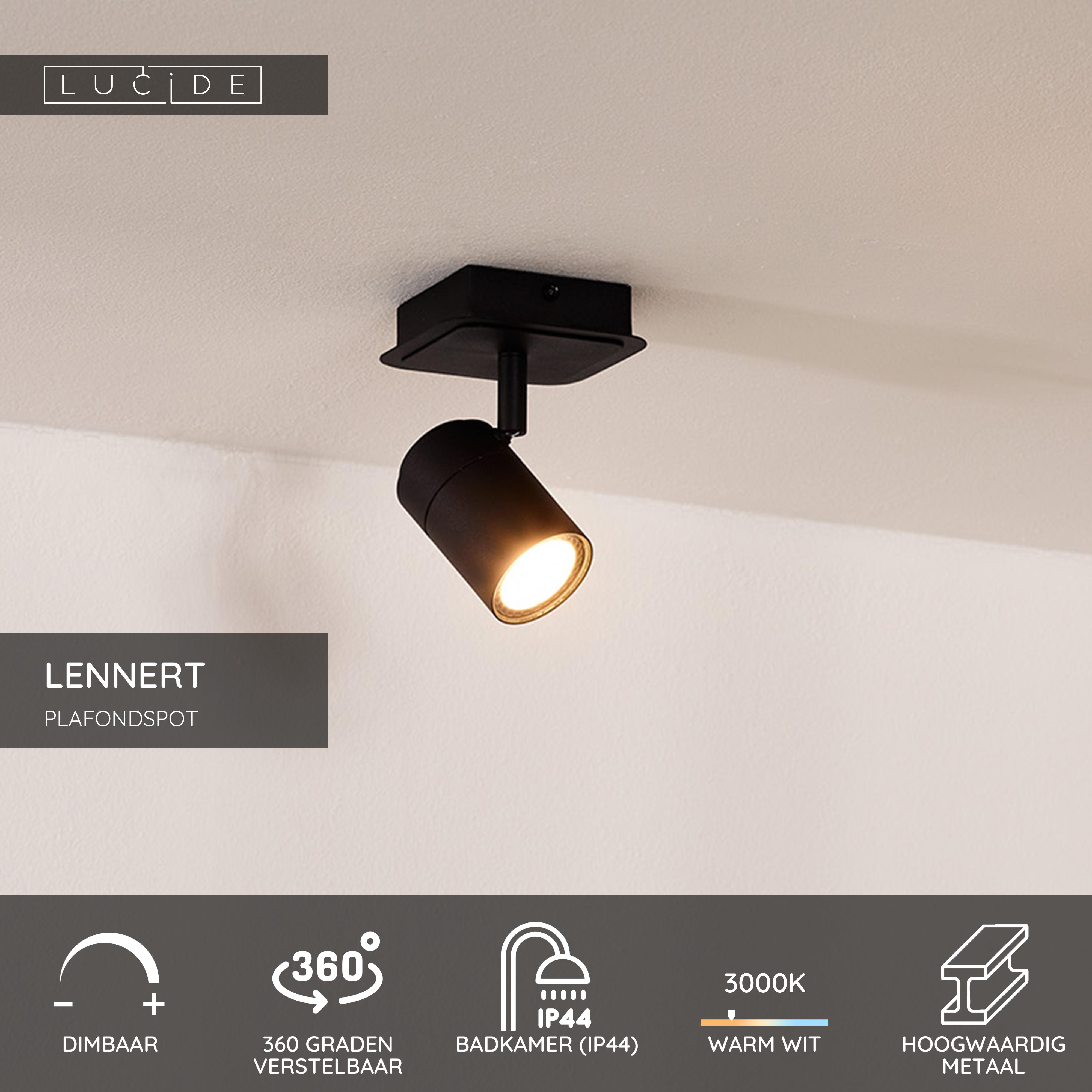 Lucide LENNERT - Plafondspot Badkamer - LED Dimb. - GU10 - 1x5W 3000K - IP44 - Zwart