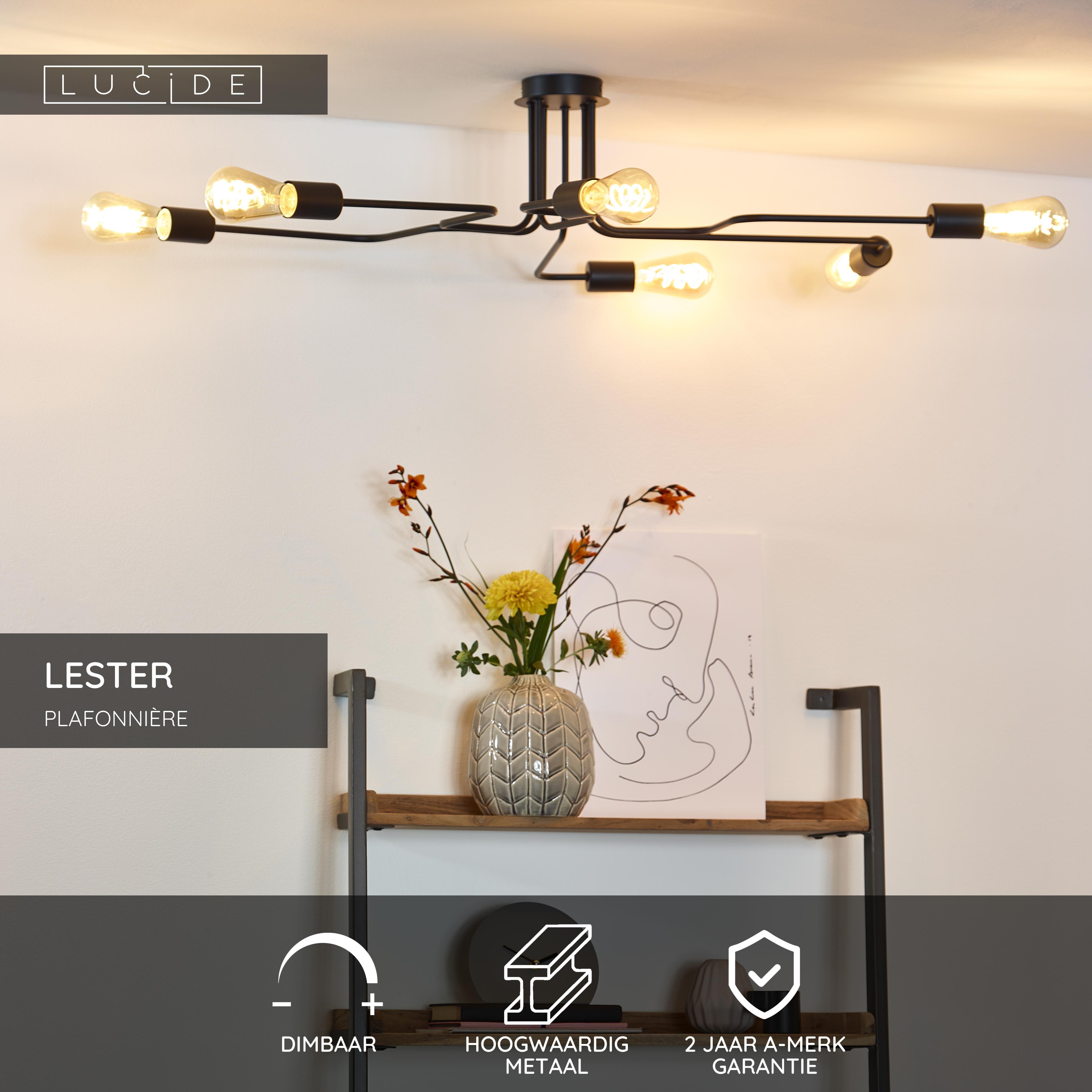 Lucide LESTER - Plafonnière - 6xE27 - Zwart