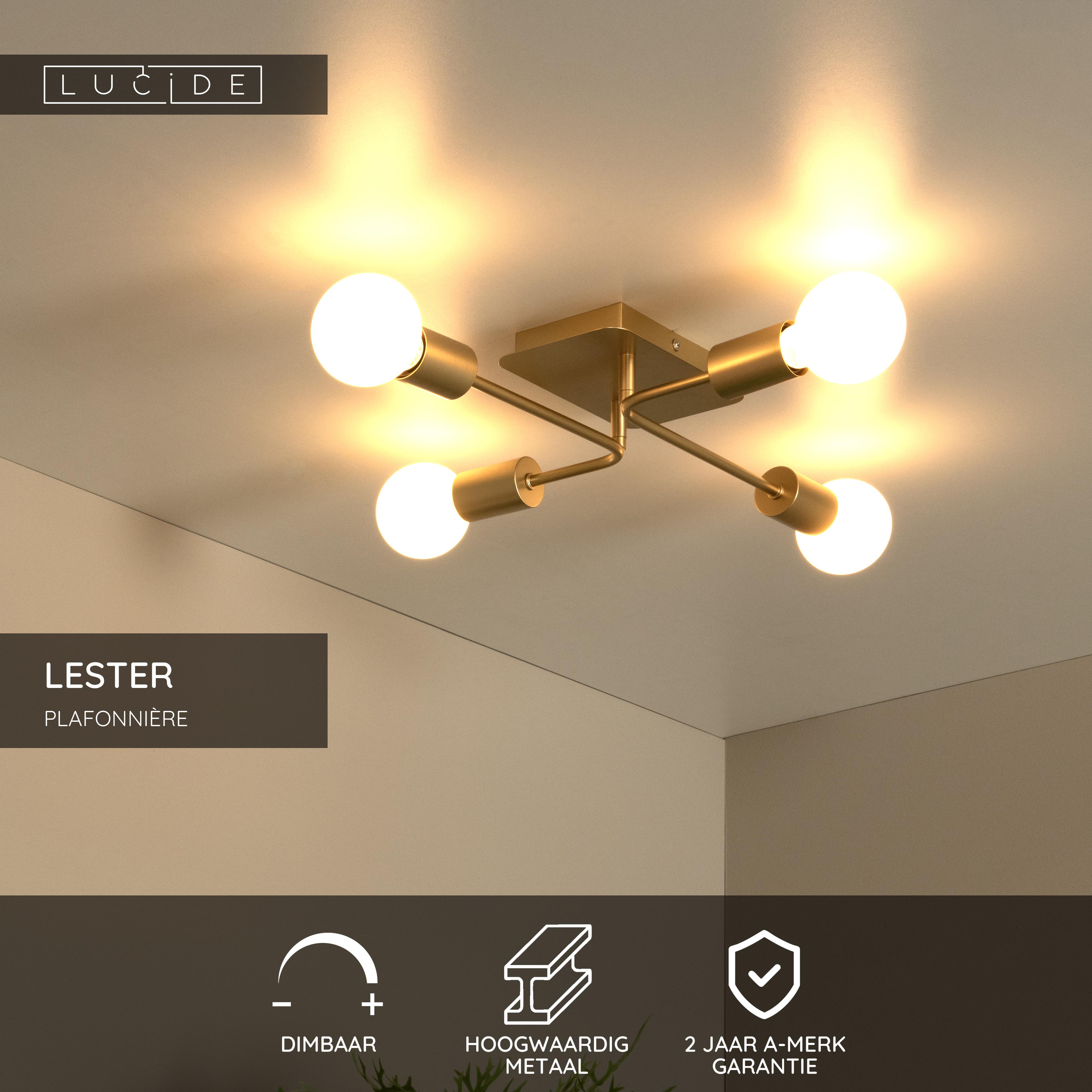 Lucide LESTER - Plafonnière - 4xE27 - Mat Goud / Messing