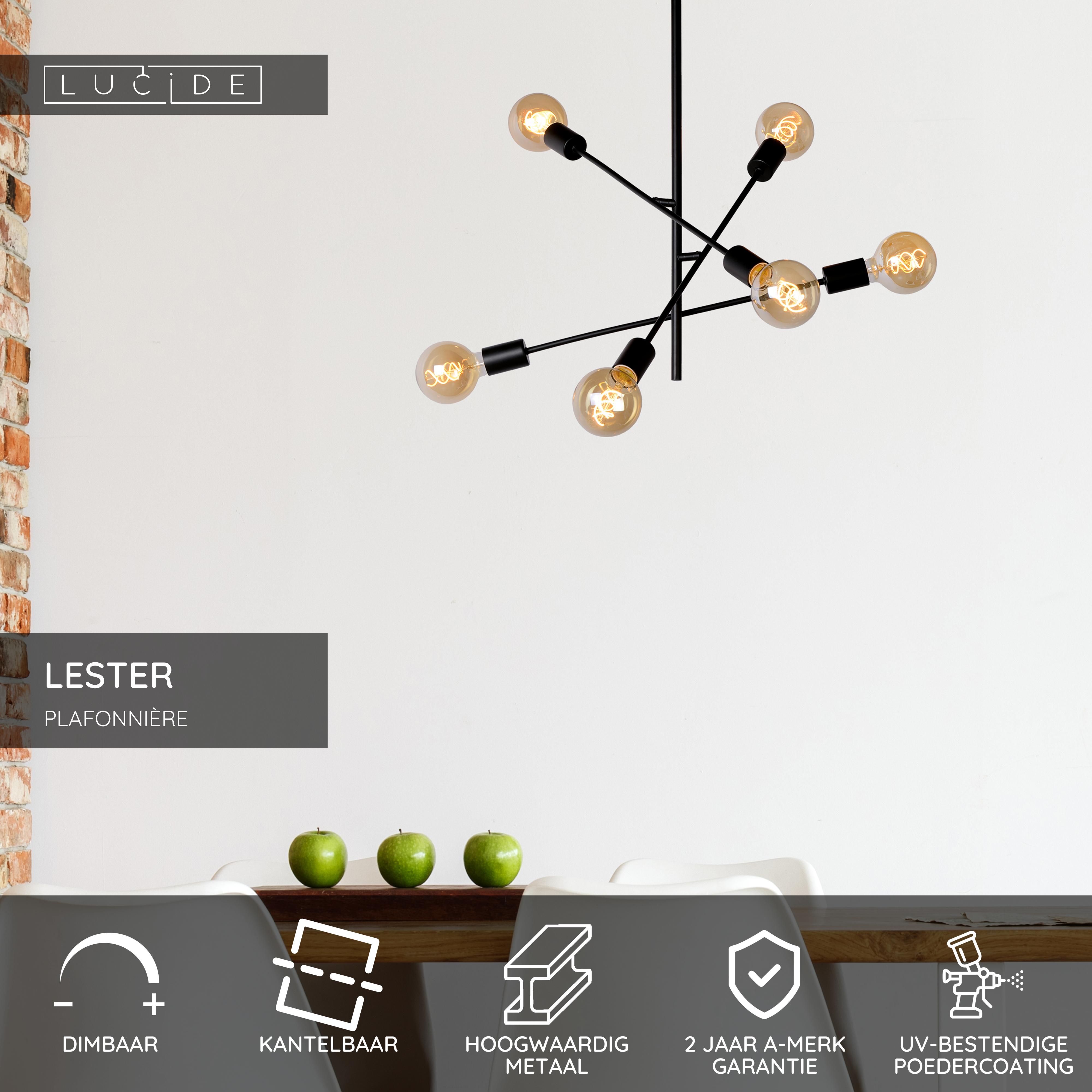Lucide LESTER - Plafonnière - 6xE27 - Zwart