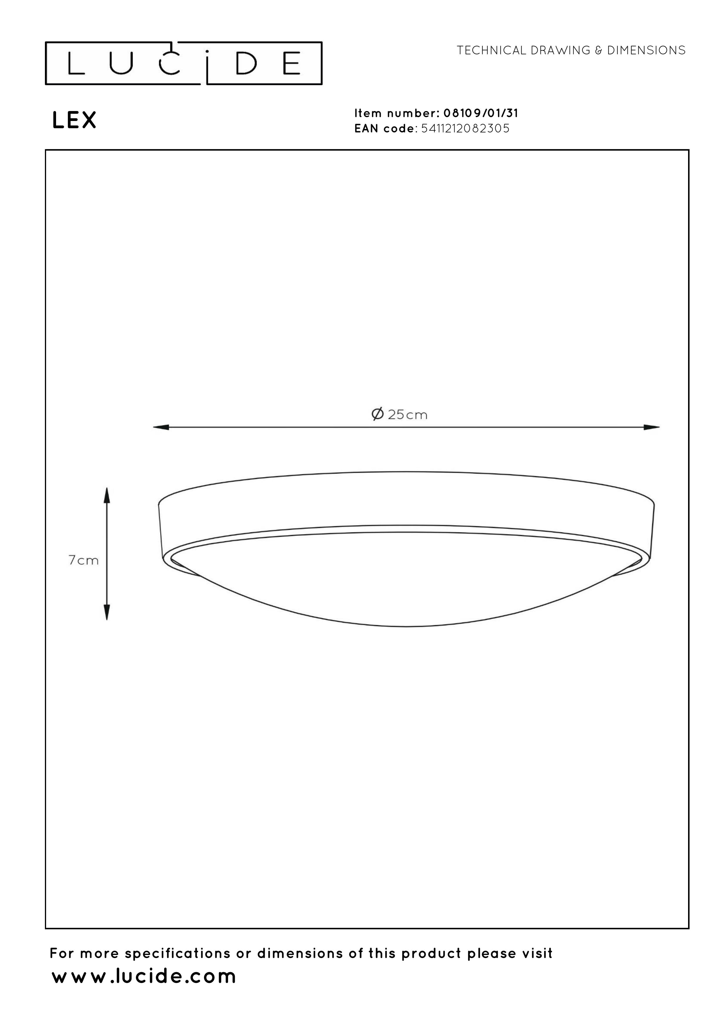 Op zoek naar een economische oplossing voor het verlichten van uw gang, hal of garage, maar mag het toch nét dat ietsje meer zijn? De eenvoudige vorm gecombineerd met een perfecte afwerking maakt van het LEX plafondlicht een topper! Beschikbaar in zwart of wit en in 25cm of 33cm doormeter, met 1 of 2 lichtbronnen. Iedere ruimte zijn LEX!