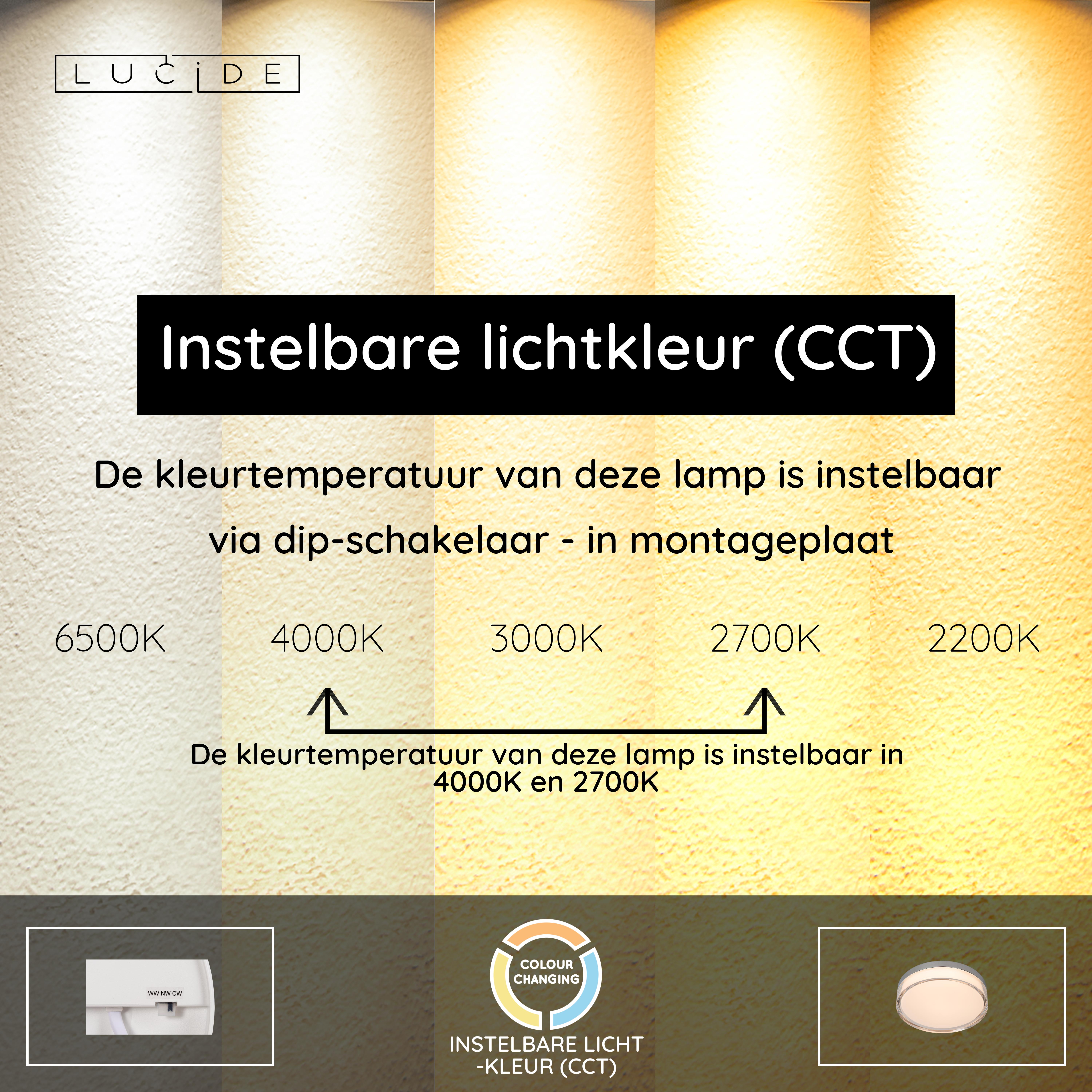 De Lucide PLANO plafonnière combineert modern design met slimme technologie voor binnen én buiten. Dankzij de geïntegreerde LED lichtbron van 11W geniet je van energiezuinige verlichting met een instelbare kleurtemperatuur van warm wit (2700K) tot helder wit (4000K). De praktische DIP-schakelaar in de montageplaat maakt aanpassen eenvoudig. Met een diameter van 23 cm en een hoogte van slechts 5,9 cm past deze plafonnière moeiteloos in badkamers, gangen of overdekte buitenruimtes dankzij de IP44-bescherming. Sluit de PLANO plafonnière eenvoudig aan op een externe dimmer (excl.) voor de perfecte sfeer. Kies voor stijlvolle, functionele verlichting van Lucide die bij elke ruimte past.
