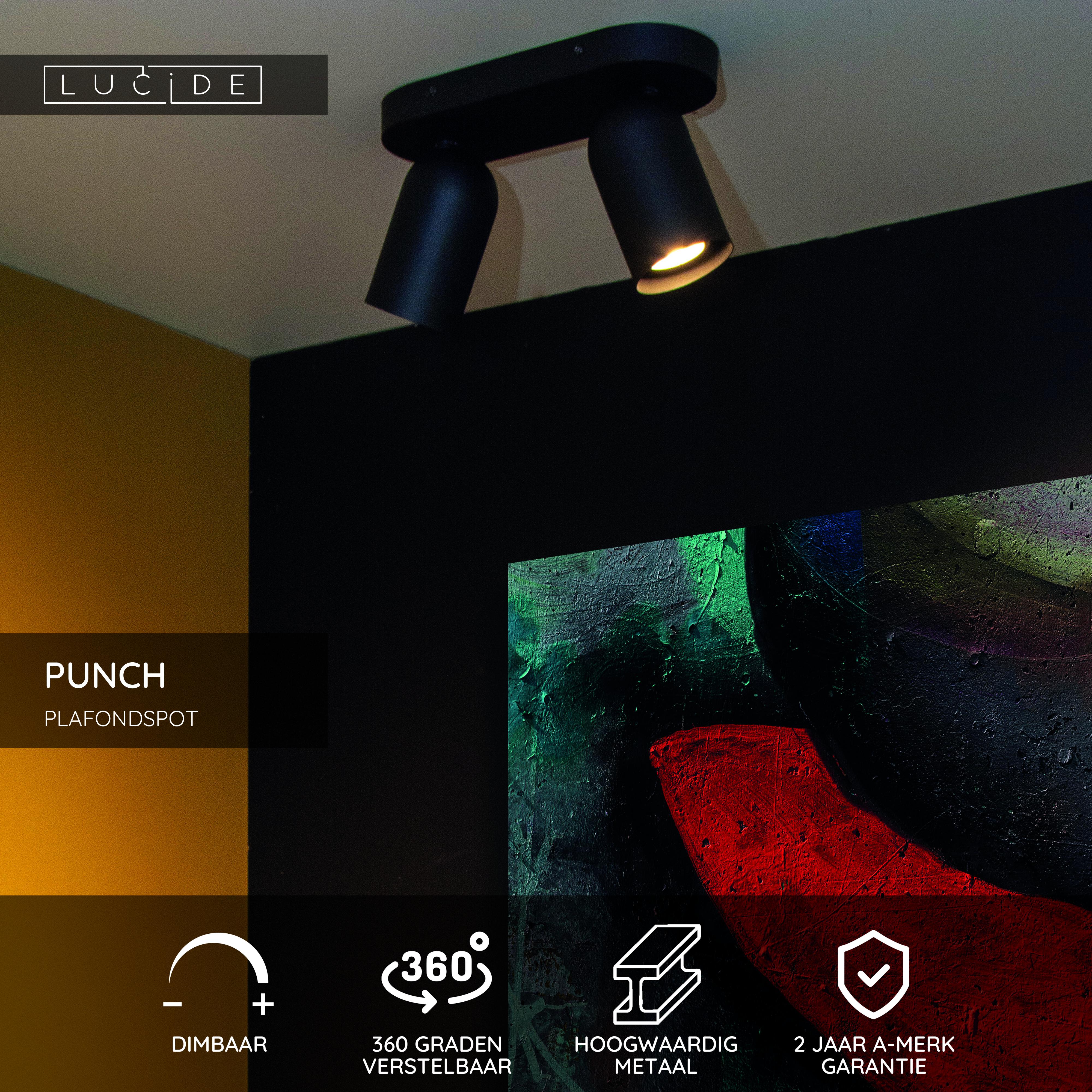 Lucide PUNCH - Plafondspot - 2xGU10 - Zwart