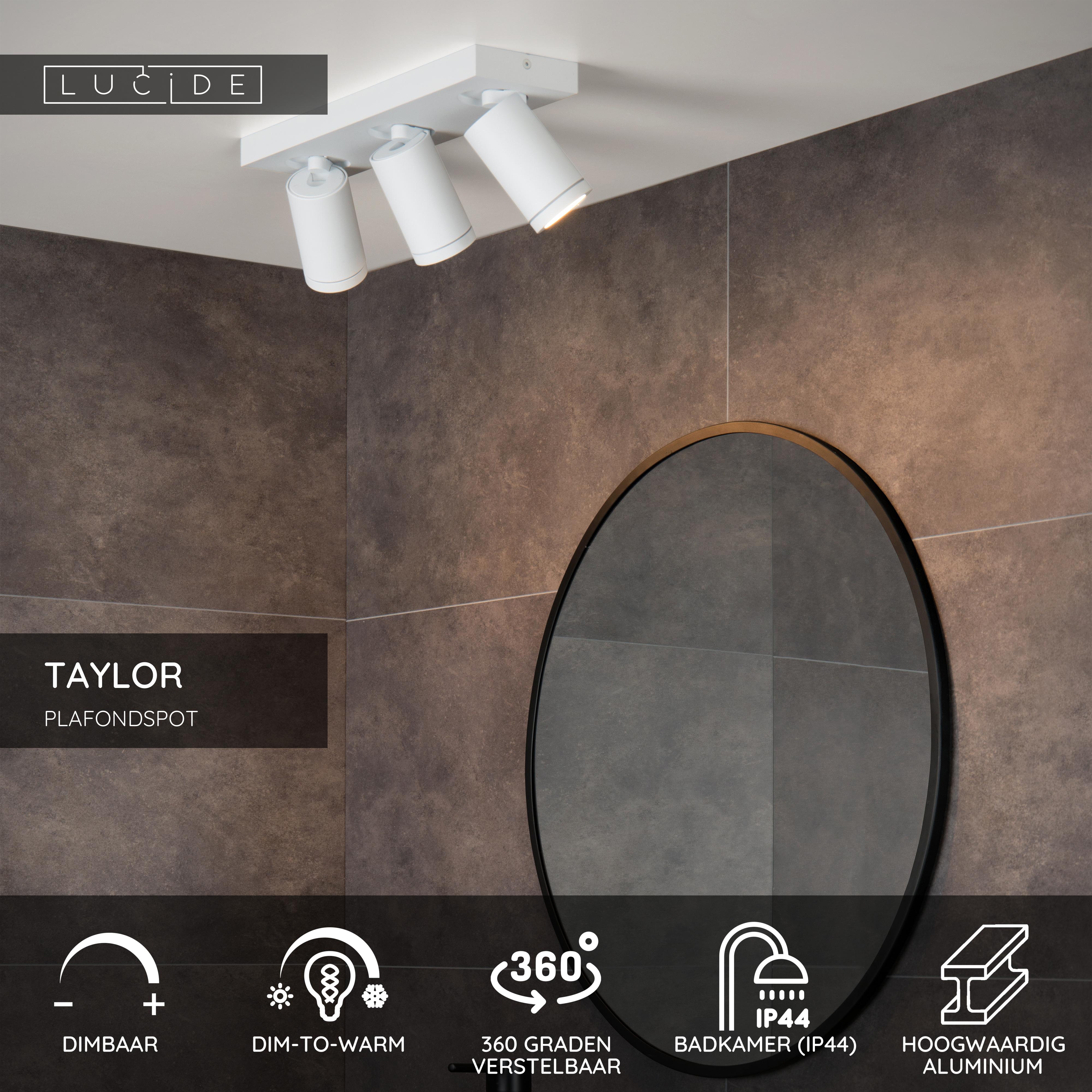 Lucide TAYLOR - Plafondspot Badkamer - LED Dim to warm - GU10 - 3x5W 2200K/3000K - IP44 - Wit