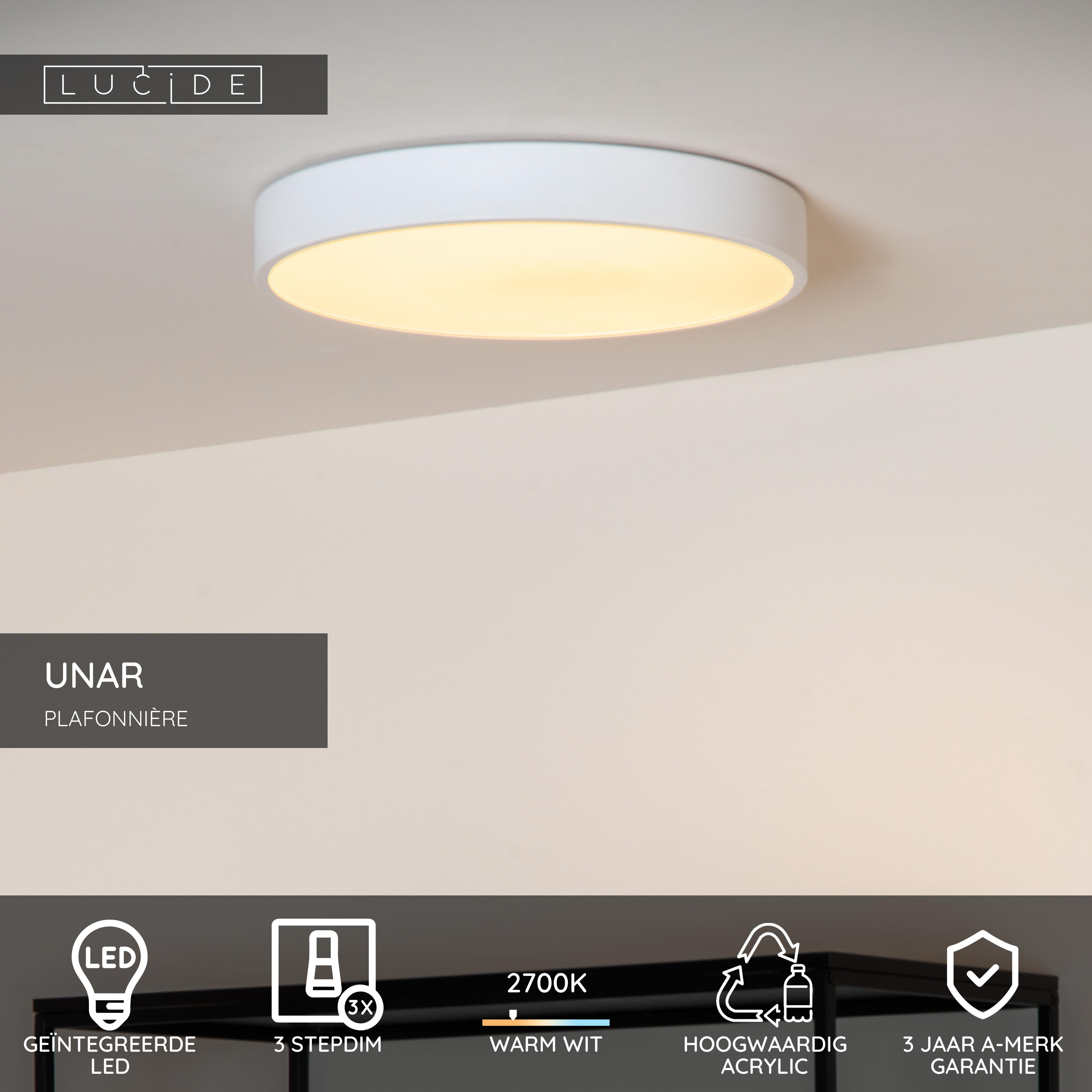 Lucide UNAR - Plafonnière - Ø 30 cm - LED 3 StepDim - 1x18W 2700K - Wit