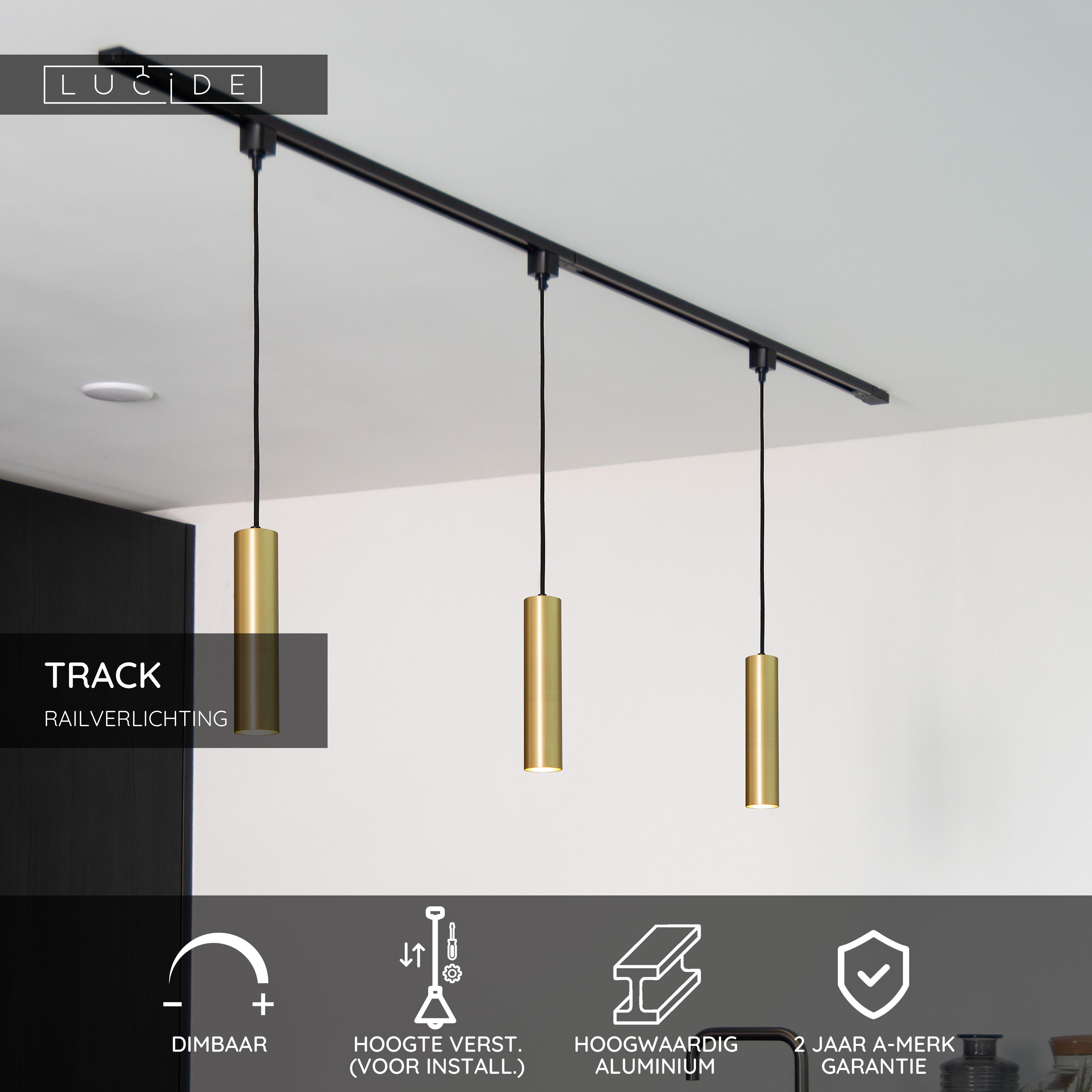 Lucide TRACK FLORIS Hanglamp - 1-fase Railsysteem / Railverlichting - 1xGU10 - Mat Goud / Messing (Uitbreiding)