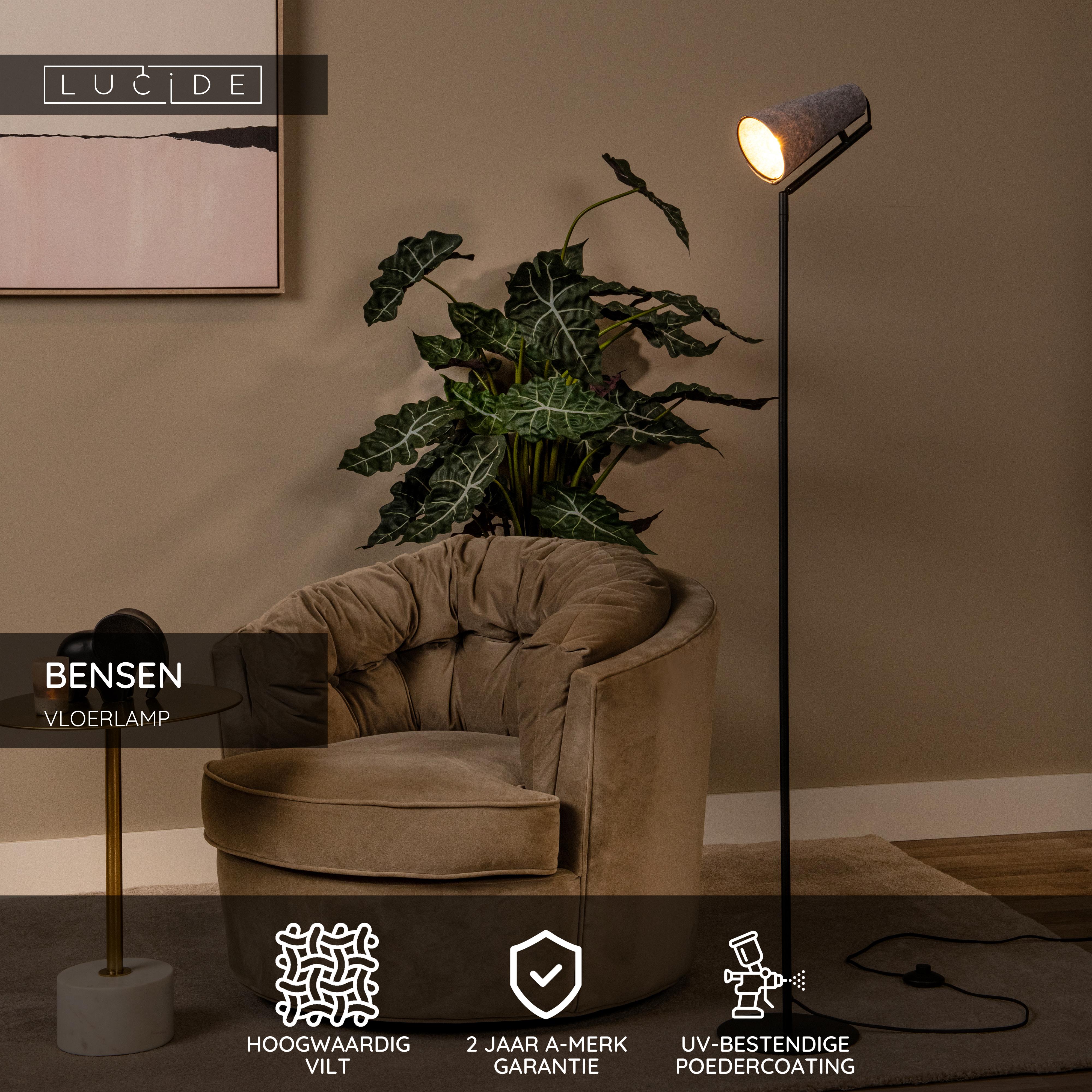 Bensen lijkt een klassieke staande lamp, maar met zijn originele, kegelvormige lampkap in hoogwaardig vilt verrast deze vloerlamp zijn toeschouwers. Het slanke, hoekige ontwerp is subtiel en geeft de ruimte een onverwacht karakter. Bensen voegt een stijlvolle toets toe aan de donkere hoekjes in je woonkamer, kantoor, wachtruimte of eetkamer. Kies voor een zuinige ledverlichting en klik de staande lamp eenvoudig aan en uit met de schakelaar op het snoer: Bensen maakt je leven zo een pak praktischer en helderder.
