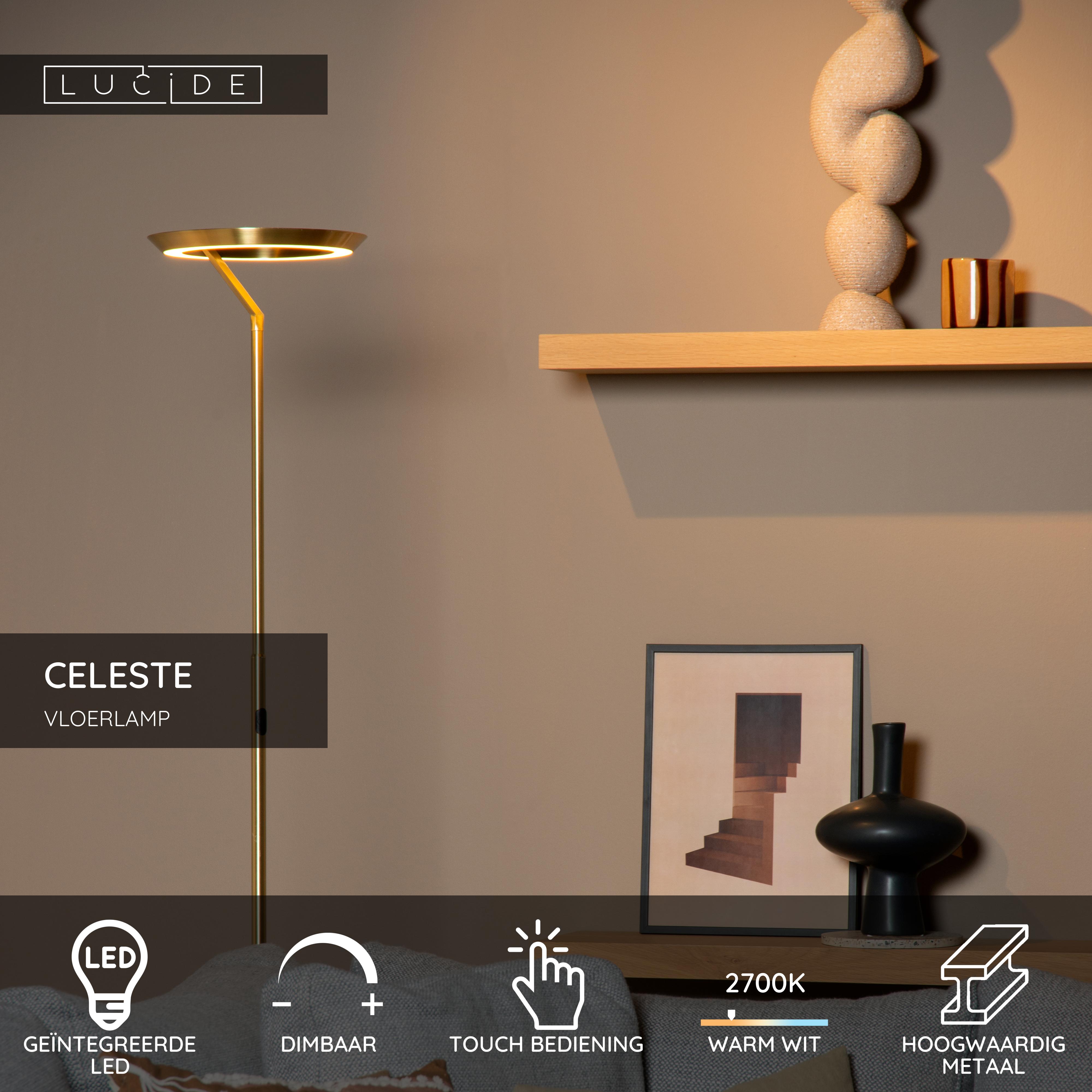 Lucide CELESTE - Vloerlamp - Ø 28 cm - LED Dimb. - 1x21W 2700K - Mat Goud / Messing