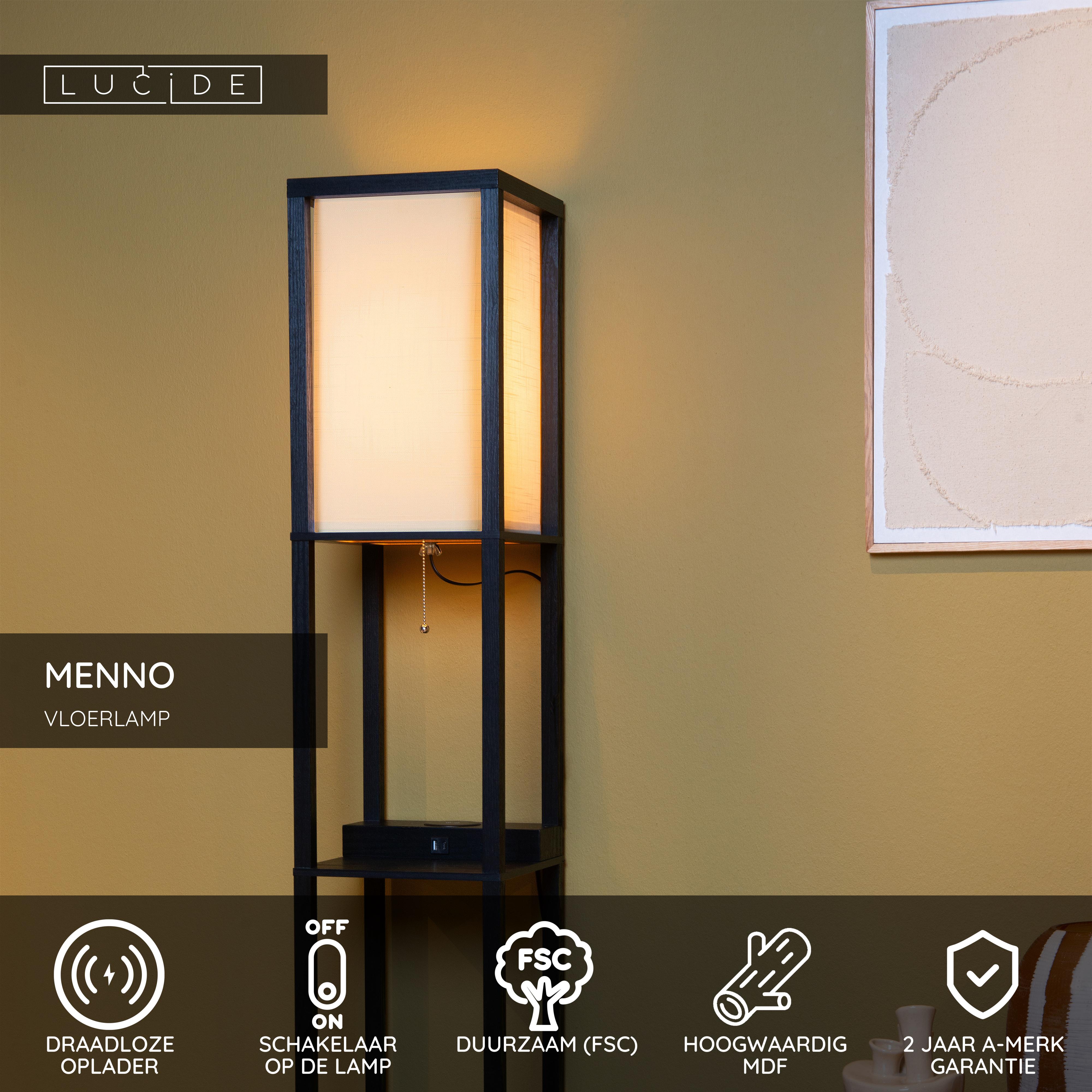 Lucide MENNO - Vloerlamp - 1xE27 - Met draadloze oplader - Zwart