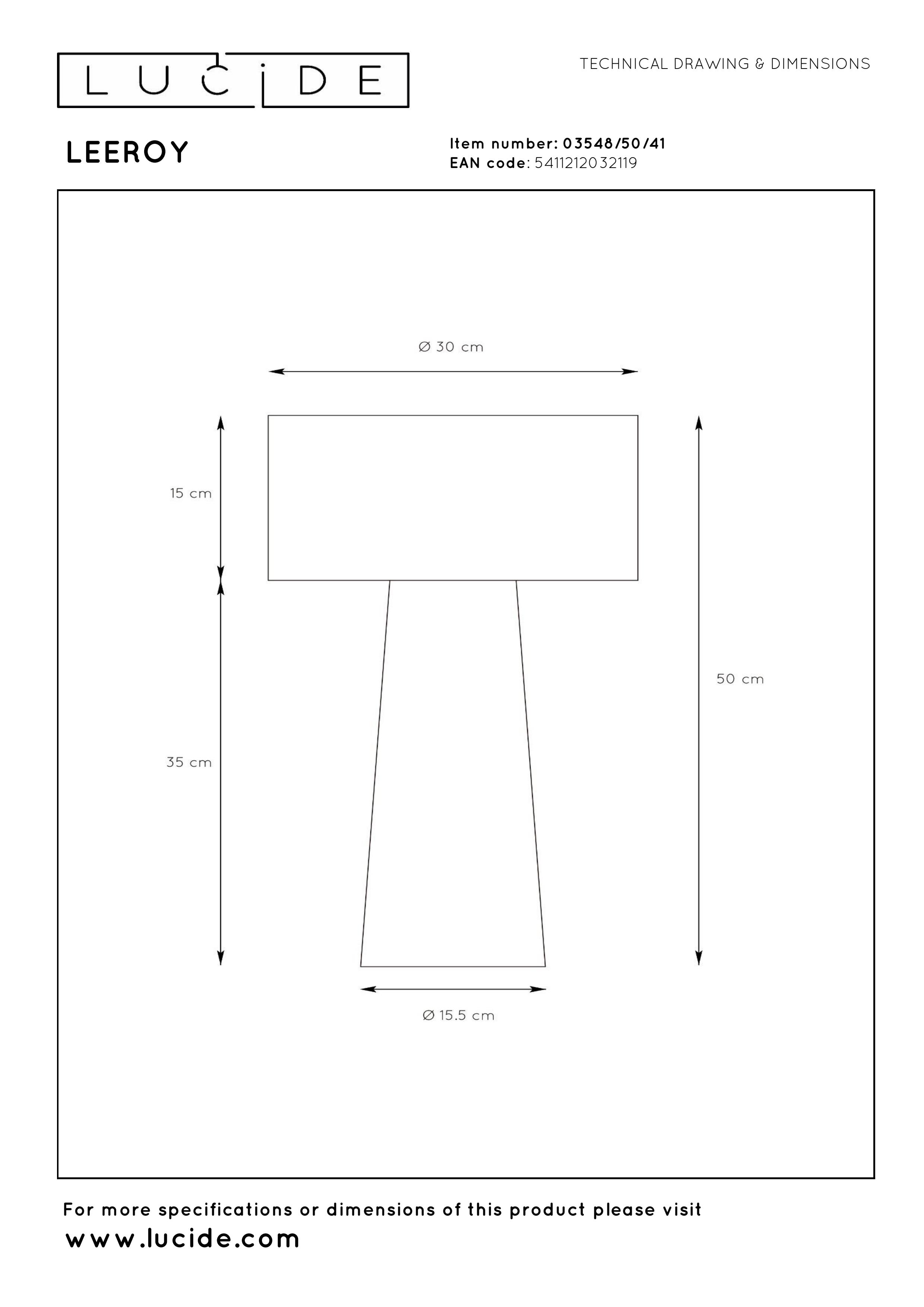 Leeroy is een absolute eyecatcher met zijn moderne, ronde ontwerp en uitvoering in textiel. Op een bijzettafel of nachtkastje geeft deze tafellamp de hele kamer een zachte uitstraling. Zowel de cilindrische kap als de kegelvormige voet zijn met hoogwaardig linnen bekleedt, waardoor Leeroy een warm licht door de kamer verspreidt. Bedienbaar met de schakelaar op het snoer, is Leeroy ideaal als nachtlampje. Deze tafelverlichting maakt je woonkamer of slaapkamer compleet en laat je dromen van gezellige ochtenden en warme, intieme avonden.