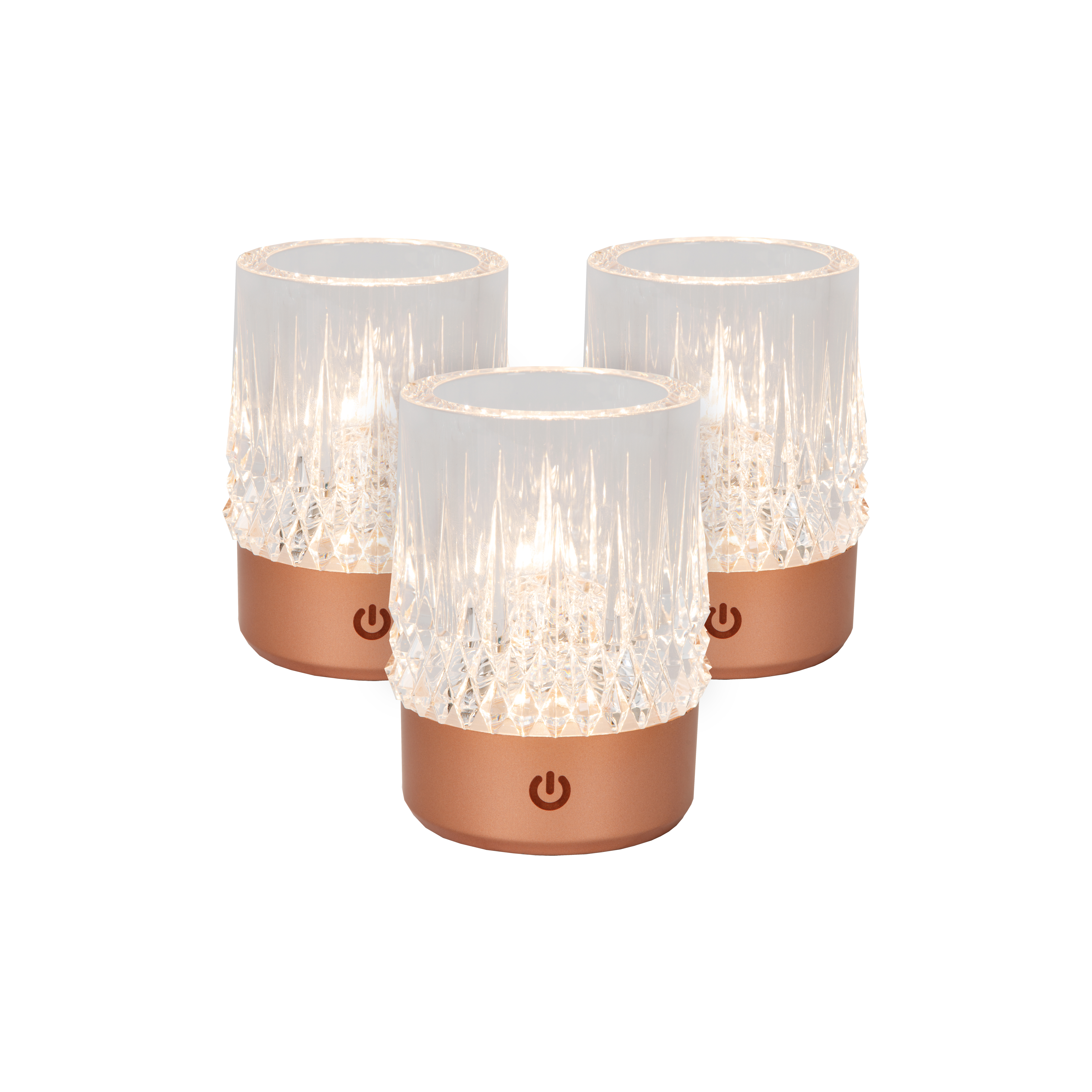 Lucide LILY - Oplaadbare Tafellamp - Accu/Batterij - Ø 8 cm - LED 3 StepDim - 1x3W 2700K/3000K - Koper - Set van 3