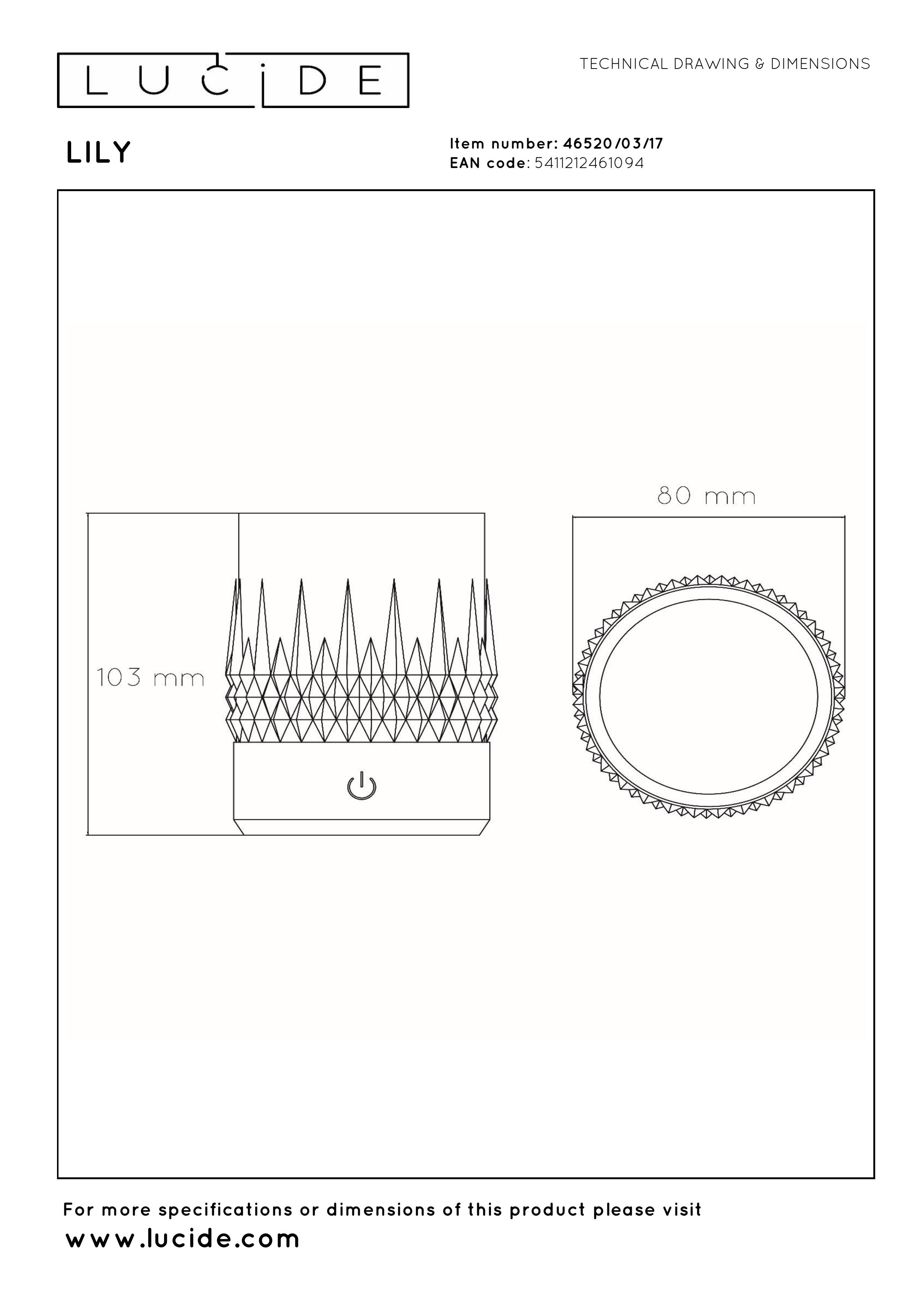 - Verbruik: 1x3W / 5V / Dimbaar (Lichtbron inbegrepen)