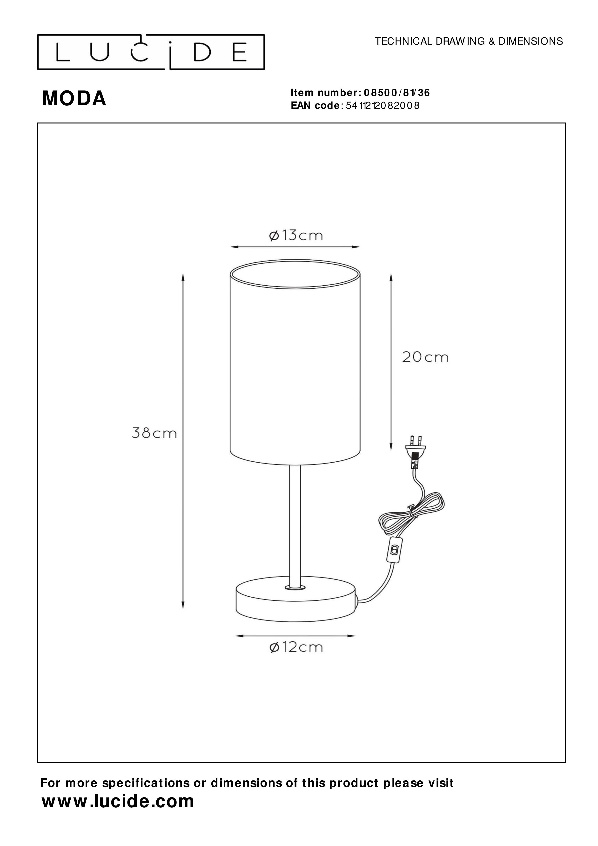 Lucide MODA - Tafellamp - Ø 13 cm - 1xE27 - Grijs