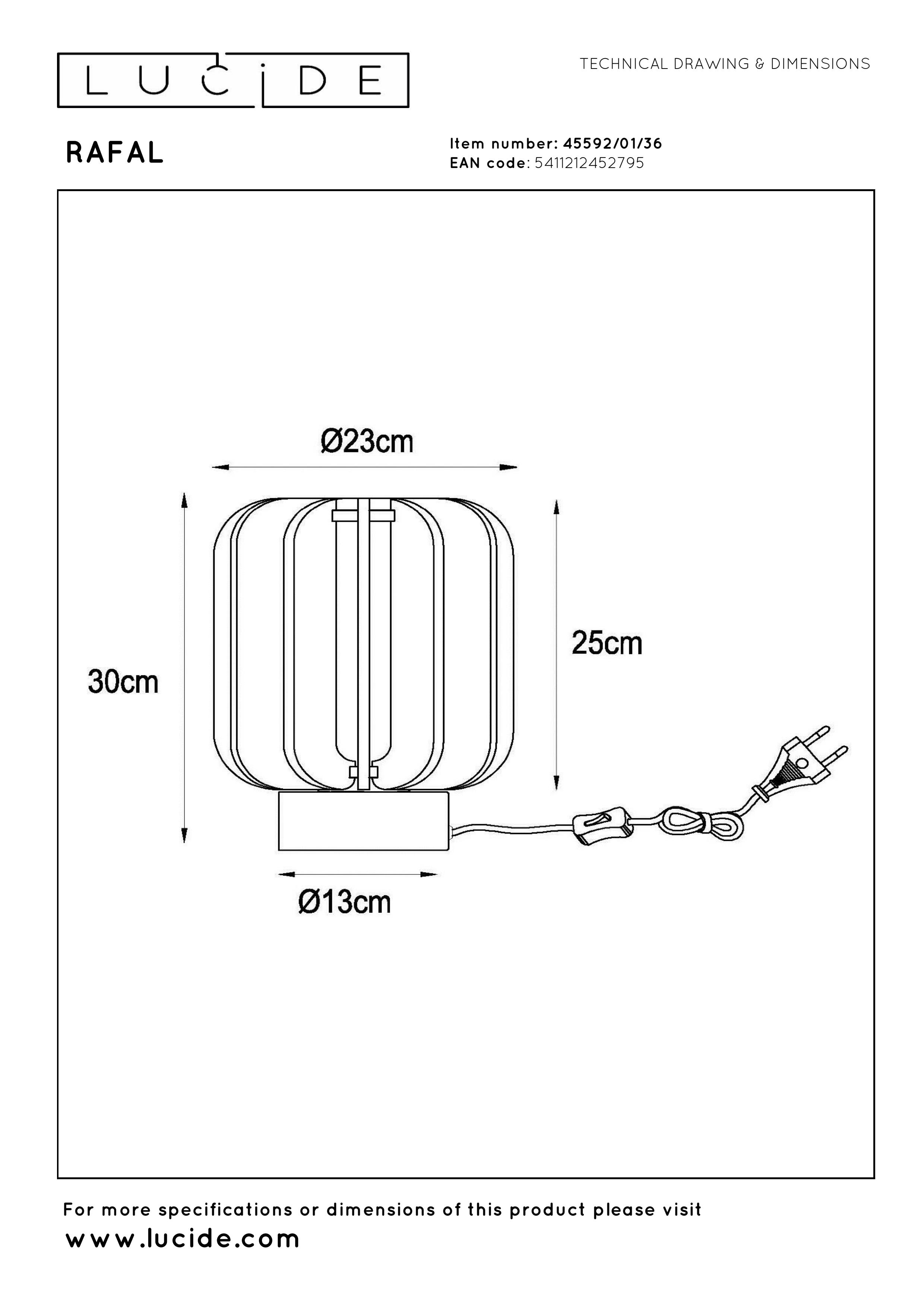 Lucide RAFAL - Tafellamp - Ø 23 cm - 1xE27 - Grijs