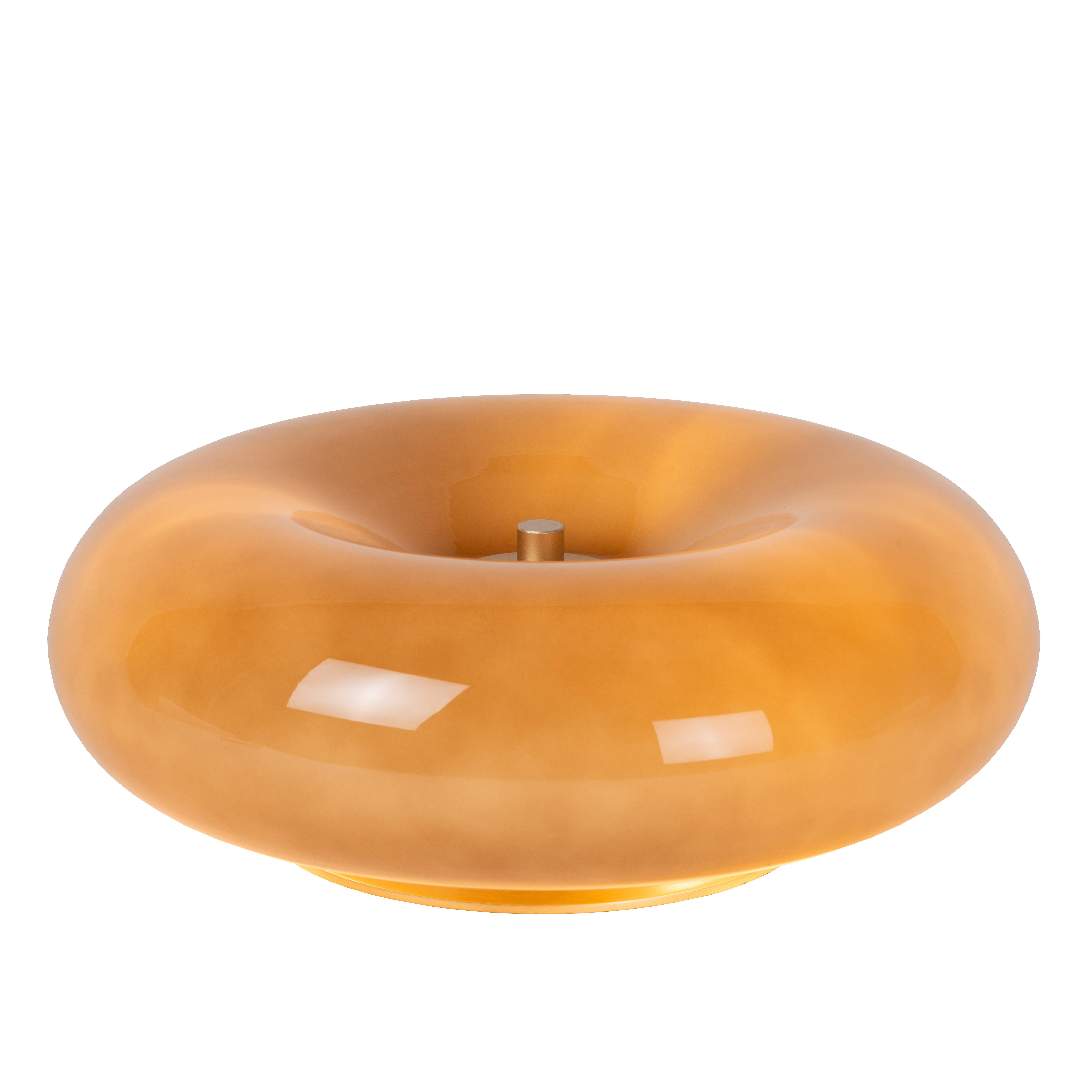 Geef jij je bijzettafel, buffetkast of nachttafeltje graag een sixties-toets? Kies dan voor de opvallende ronde vormen van Sentino. Deze tafellamp bestaat uit een donut van glanzend gecoat glas op een slanke sokkel en voet uit metaal. Sentino verspreidt zo niet alleen een zeer zacht licht, maar bepaalt ook het karakter van de kamer. Ook wanneer deze eigentijdse leeslamp uitgeschakeld is, is het ongetwijfeld de eyecatcher in je kantoor, slaapkamer of living. Durf jij deze stoere designkeuze aan? Dan is Sentino de tafelverlichting voor jou.