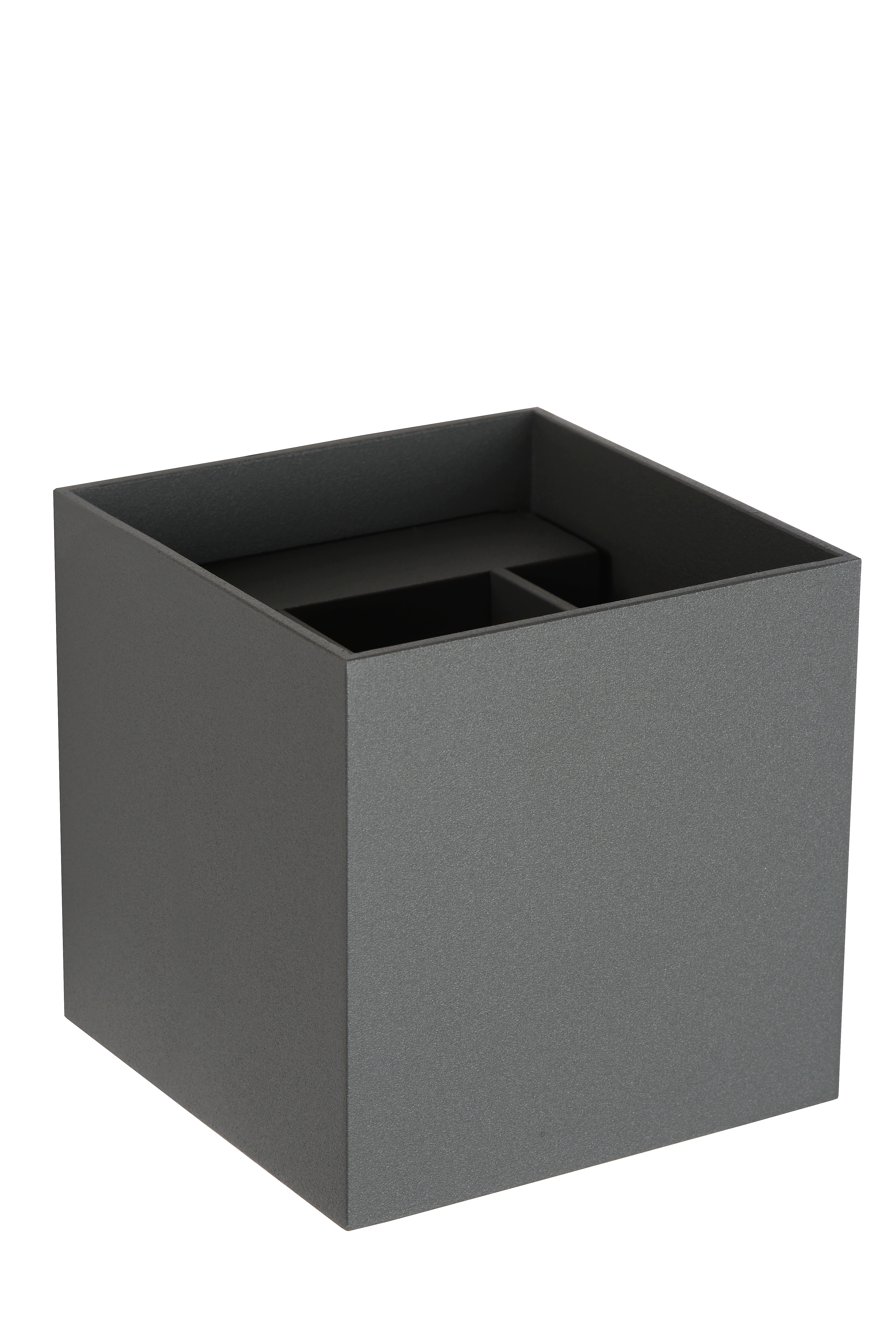 Een grijze, strakke doos vol licht voor je muur. Deze kubus van Xio is een modern wandlicht met zijdes van 9,7 centimeter. Het aluminium frame maakt deze verlichting makkelijk te installeren en eenvoudig te verplaatsen. Klein, licht, maar een robuuste verlichting. Deze compacte verlichting is gespierd. Xio is compatibel met led-lampen voor maximaal 4W en een lichtkleur van 2700 K.Het item heeft twee verstelbare lamellen waardoor je de lichtbundel deels kan verstellen. Zo kies je er voor om de bundel evenredig naar boven/beneden te laten schijnen. Enkel naar boven of enkel naar beneden of boven/beneden een smallere bundel en aan de andere zijde een bredere bundel, zijn ook mogelijk. Deze muurlampen met G9-fitting verlichten je slaapkamer en geven een klare, warme kijk op de dingen.