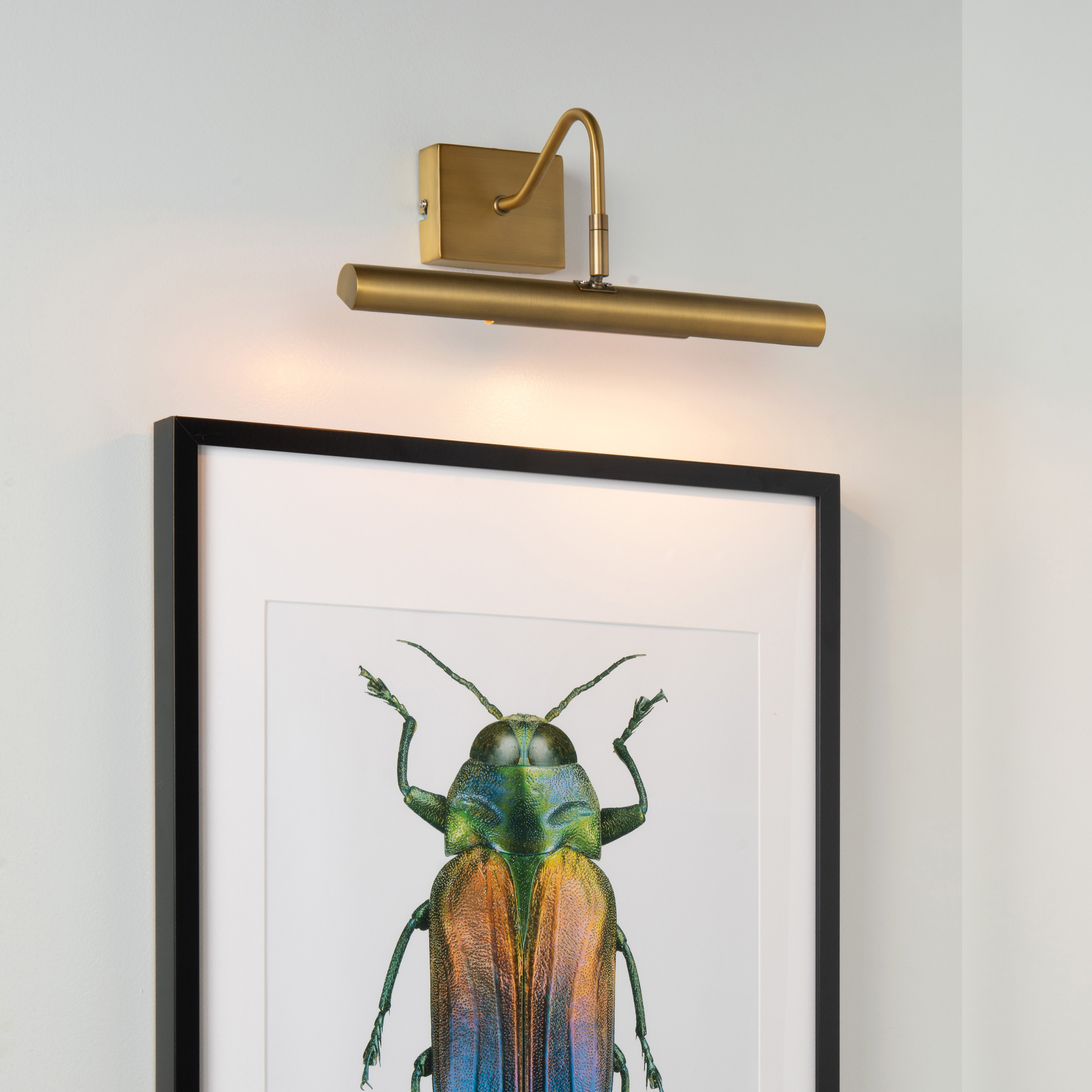 Omdat schilderijen en designobjecten vaak bij de gehele interieurstijl passen, vind je bij ons ook kunstspots in bijpassende stijl. Heb je bijvoorbeeld een klassieke interieurstijl of landelijke woonlook? Dan raden wij je onze spot met bronzen armatuur aan. Met een lengte van 27,9 centimeter voorziet deze wandlamp ieder kunstwerk van genoeg licht. Daarbij komt, dat de armatuur in hoogte verstelbaar is. Zo geef je je kunstwerk een warme gloed waarmee de ware aard naar boven komt.
